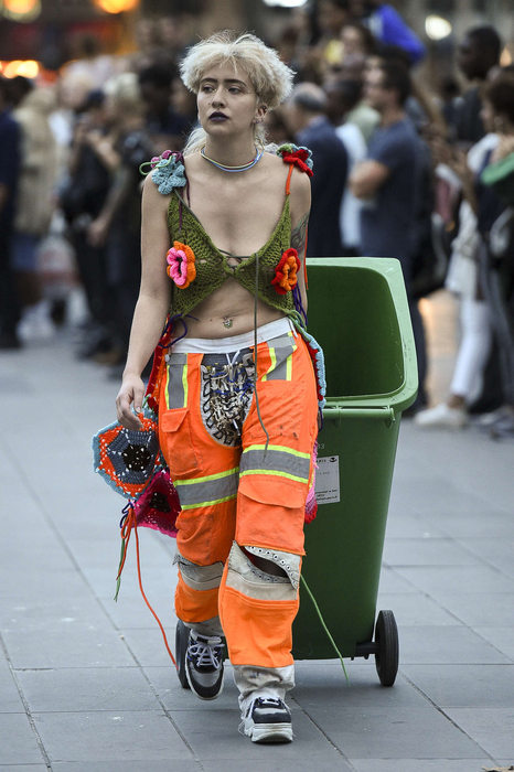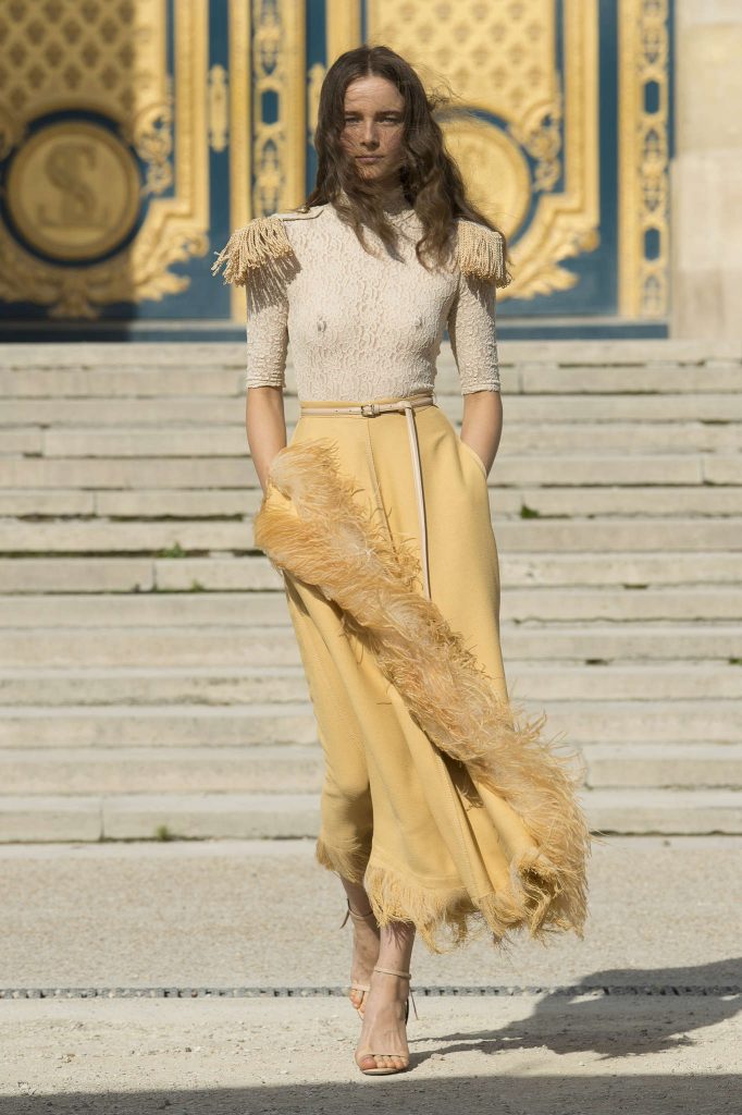 Loewe : premier défilé de la journée. 9H45 tapante, les bulles de champagnes s’entrechoquent dans la tête, tandis que les dosettes Nespresso s’écrasent dans les machines. Pourtant il faut être au summum de son attention. Les 12 minutes qui vont suivre sont un concentré d’ une grande partie des tendances de la saison .LE défilé. Face à cela, un massacre se prépare du côté des Champs-Elysées : Gypsy Sport présente sa rébellion, une satire de « la mode pour tous » ? Mise à mort de privilèges : les mannequins défilent avec des poubelles et portent ce qu’ils ont trouvé dedans. Misérabiliste à souhait: faut-il rire ou pleurer ? Loin du manifeste rebelle aux sursauts adolescents, Alexis Mabille, Emanuel Ungaro ou Andrew G.N confirment un été 2018 accès sur la légèreté, la joie. Réjouissez-vous : imprimés fleuris, tissus légers, plumes, drapés d’imprimés desquels s’échappent quelques dessous. Chic plutôt que choc. Réjouissez-vous : la mode met en scène de nouveau roi. De coeur ou de pique ?