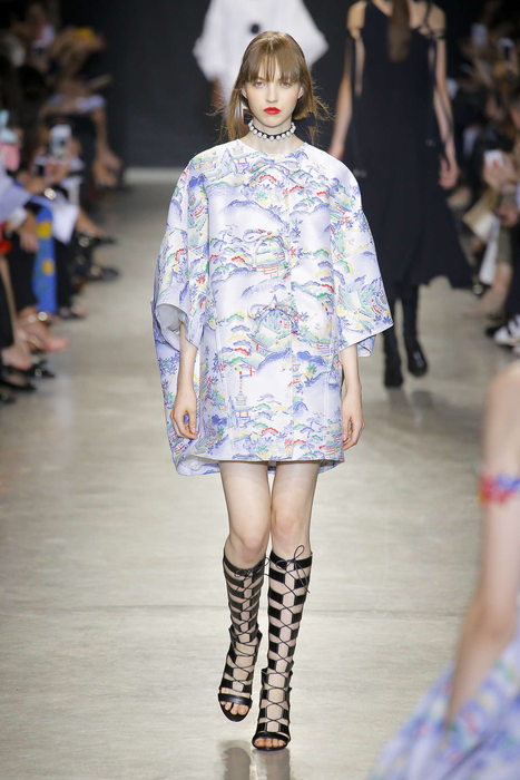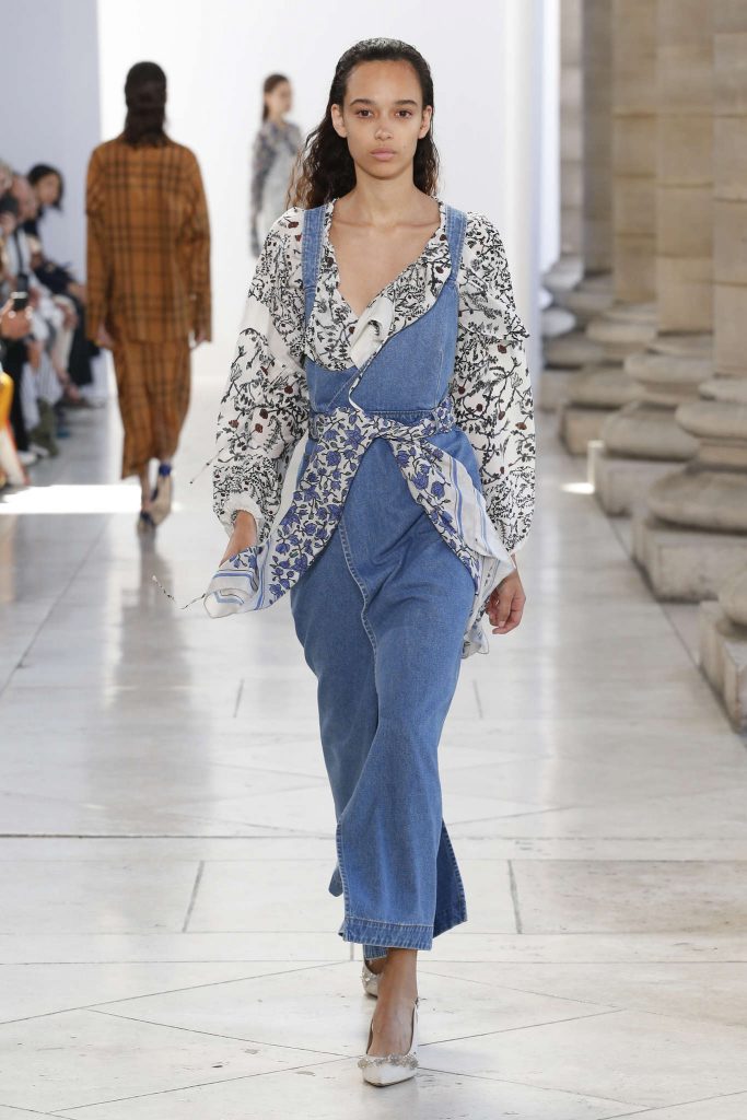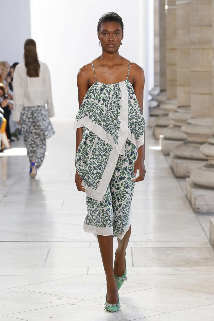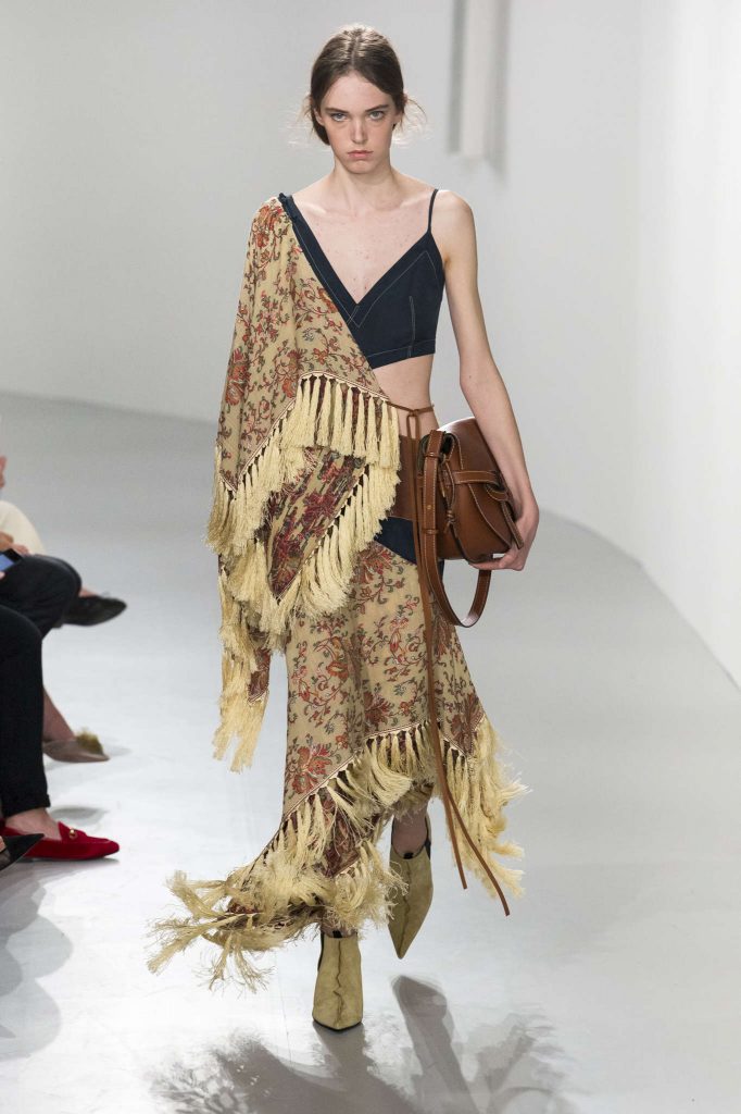 De créateur cérébral, il passe à maître des tendances. Au risque de devenir trop easy et portable – Balearic selon BoF. Un défilé mainstream, comme une mauvaise compile musique dance pour raves party sur Ibiza beach. C’est là que l’on comprend toute l’envergure d’une collection : à peine montrée elle est soumise aux plus virulentes éloges et critiques. Il serait dur de s’arrêter là en ce qui concerne ce défilé, ou de se contenter de décrire les tendances de l’été 2018 : patchwork de chutes de tissus imprimés, esprit seventies et silhouettes longilignes. Un brin champêtre un brin safari. Au regard des détails, de la musique ou de la scénographie du défilés c’est faire déshonneur à la pensée de J.W Anderson que de la momifier dans une mode IN. Parmi les suiveurs, Andrew G.N propose une collection fleurie, agrémentée de perles et rubans. Même élan chez Christian Wijnants.