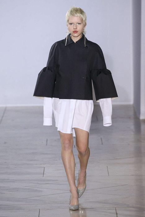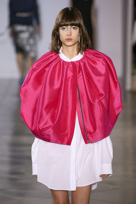 Fidèle à sa signature un brin punk, Lutz Huelle continue son travail sur les drapées. Coupes asymétriques, et blousons qui se muent aux robes. Au néo-grunge nineties, de nouvelles notes se sont gréffées. Des vestes et capes qui auraient pu s’intégrer à un hommage personnel et moderne à Jeanne Lanvin. Pour devenir roi, Huelle s’attaque à la féminité parisienne.