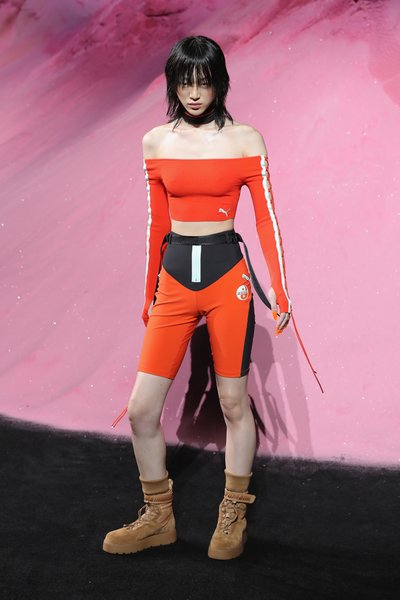 NEW YORK, NY – SEPTEMBER 10: A model walks the runway wearing Look 9 at the FENTY PUMA by Rihanna Spring/Summer 2018 Collection at Park Avenue Armory on September 10, 2017 in New York City. (Photo by JP Yim/Getty Images for FENTY PUMA By Rihanna)