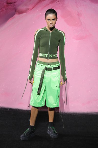 NEW YORK, NY – SEPTEMBER 10: A model walks the runway wearing Look 11 at the FENTY PUMA by Rihanna Spring/Summer 2018 Collection at Park Avenue Armory on September 10, 2017 in New York City. (Photo by Brian Ach/Getty Images for FENTY PUMA By Rihanna)