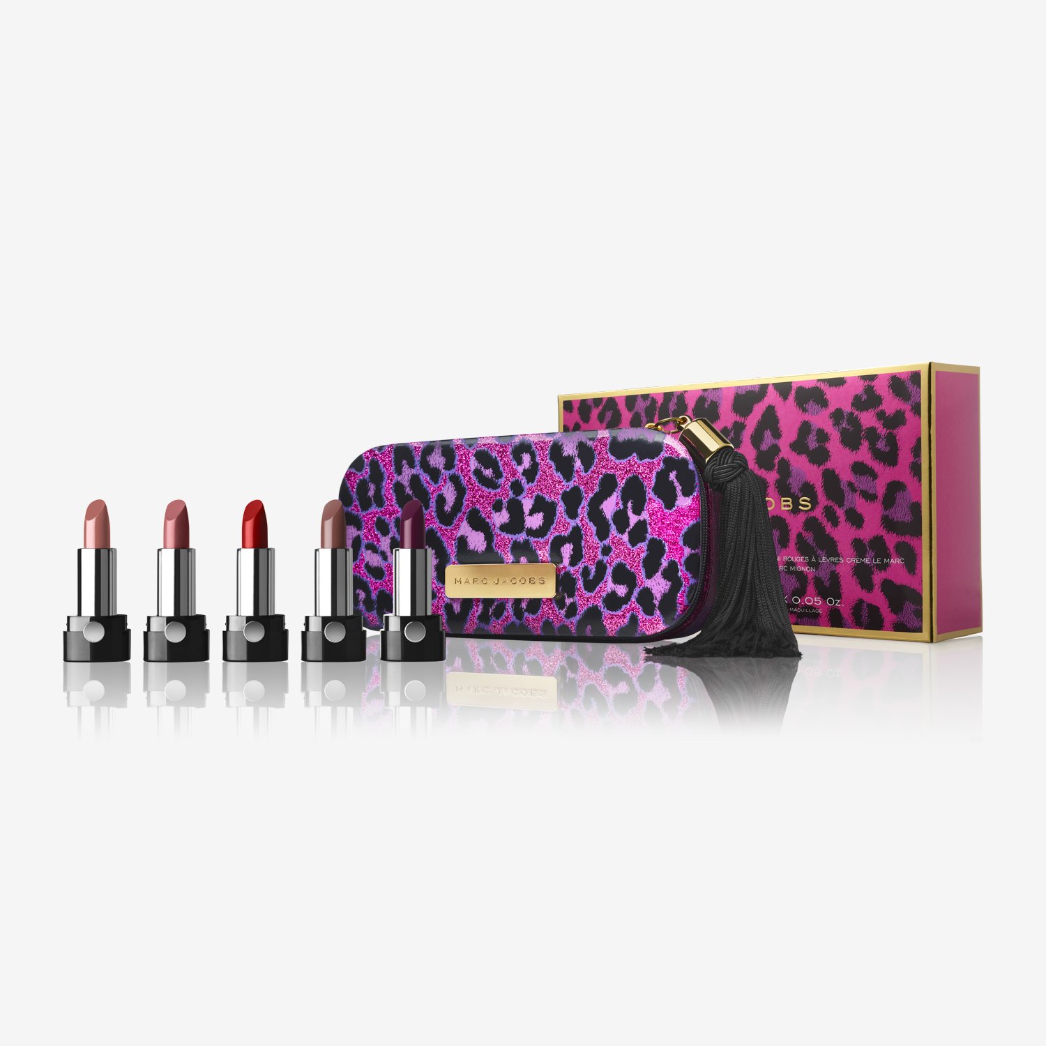 Habillez vos lèvres avec la collection de rouges à lèvres Le Marc, à la texture crémeuse, longue tenue et enrichie en agents hydratants. Une sélection de cinq minis rouges à lèvres aux couleurs intenses, du nude au prune chic, présentée dans une pochette luxueuse en cuir vegan, zippée d’un pompon élégant, signé Marc Jacobs.