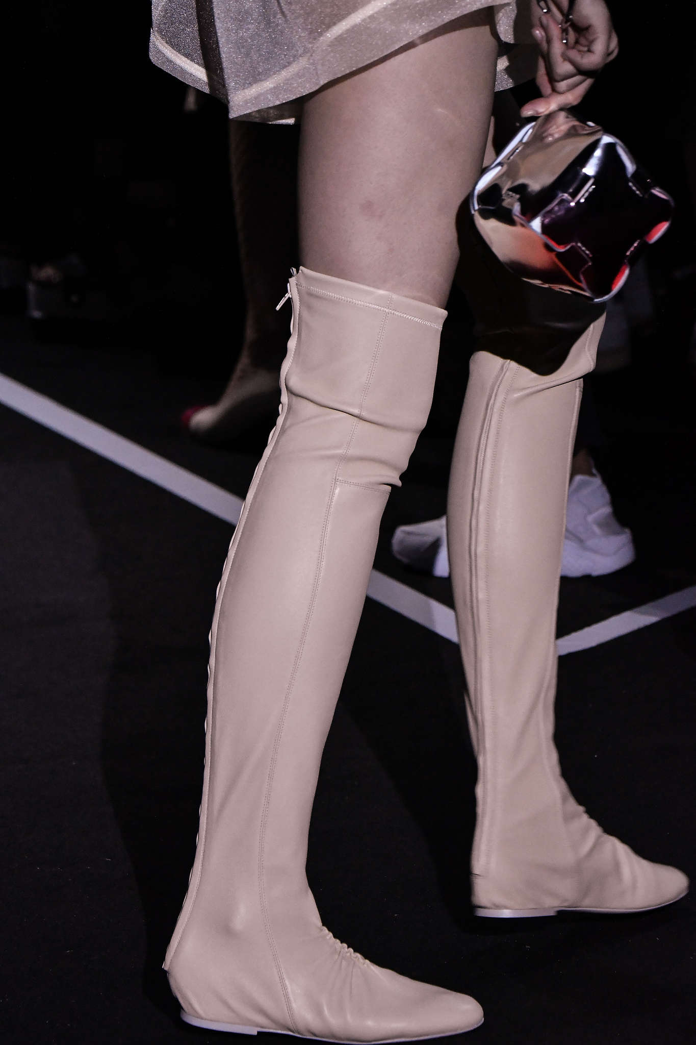 À même la chair chez Paco Rabanne et Balenciaga, les cuissardes se confondent aux vêtements et à la peau. Plus de distinctions : les femmes Balenciaga ont-elles la peau assez brillante pour hypnotiser les millions d’acheteurs ?