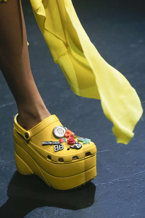 L’oeil de Zoé: Depuis déjà une saison, Christopher Kane a relancé les crocs. La version Balenciaga joue sur la surenchère : le compensé rend le modèle encore plus lourd.