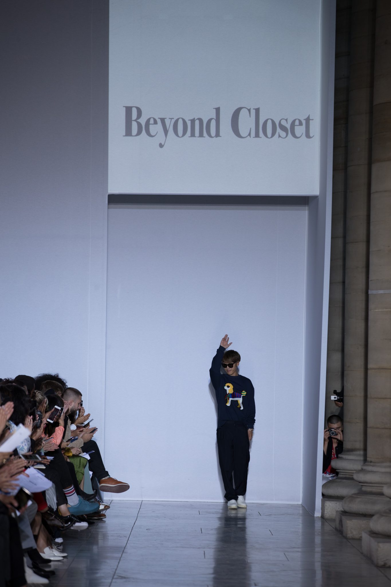 Ko Tae-yong, star des podiums séoulite avec sa marque Beyond Closet n’hésite pas à afficher son envie de voir sa griffe largement présente en France. Lorsqu’on lui demande si il a des envies de distribution de sa marque en France, il répond simplement “plein, plein !” Dans la mesure où Squeezie a déjà craqué pour une de ses pièces très abordables de la série “I Love Pets” on est tentés de se dire qu’il y a effectivement de la place pour ses silhouettes de garçons preppy twistées par des accents pop, rétro et streetwear.