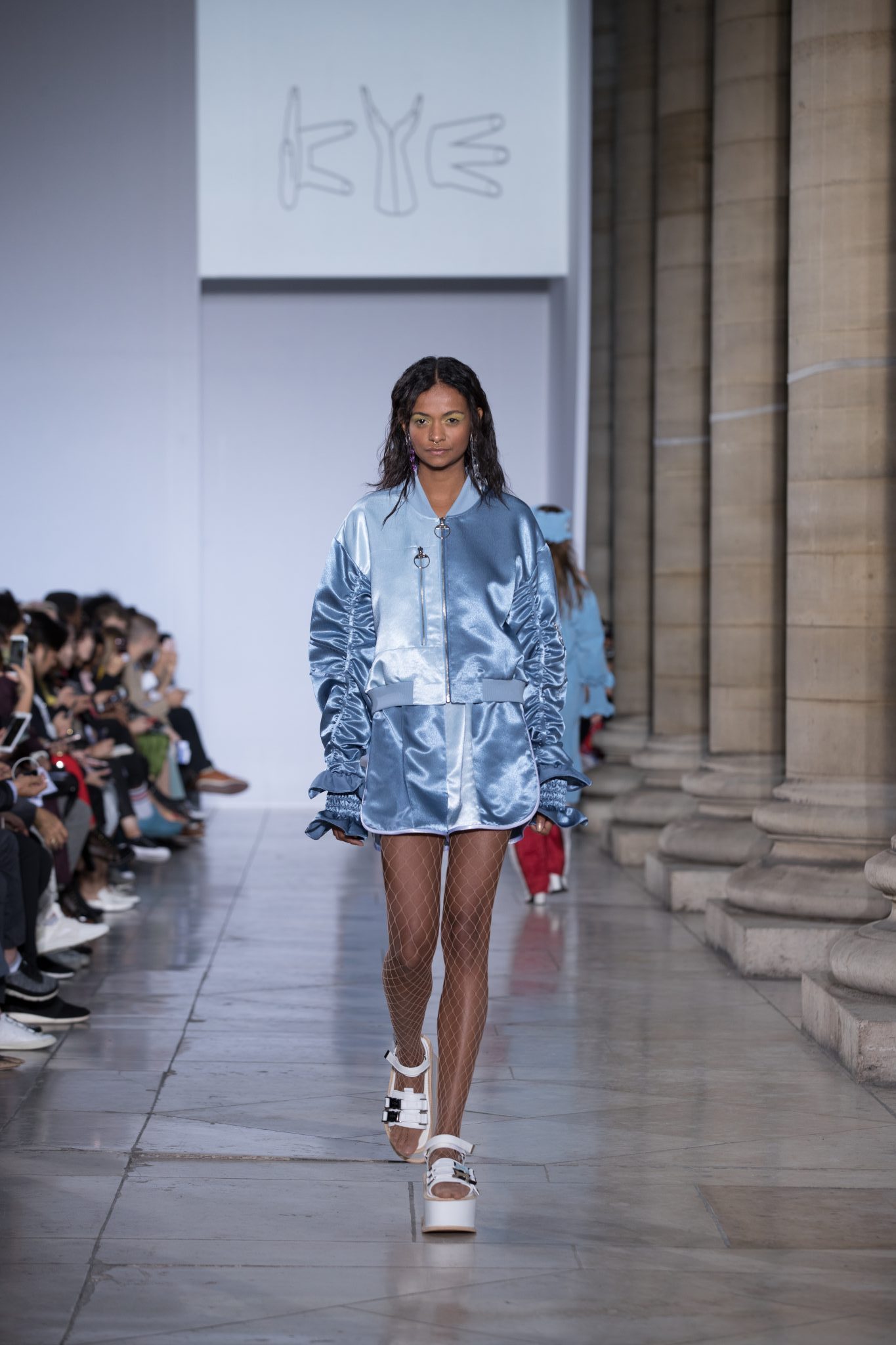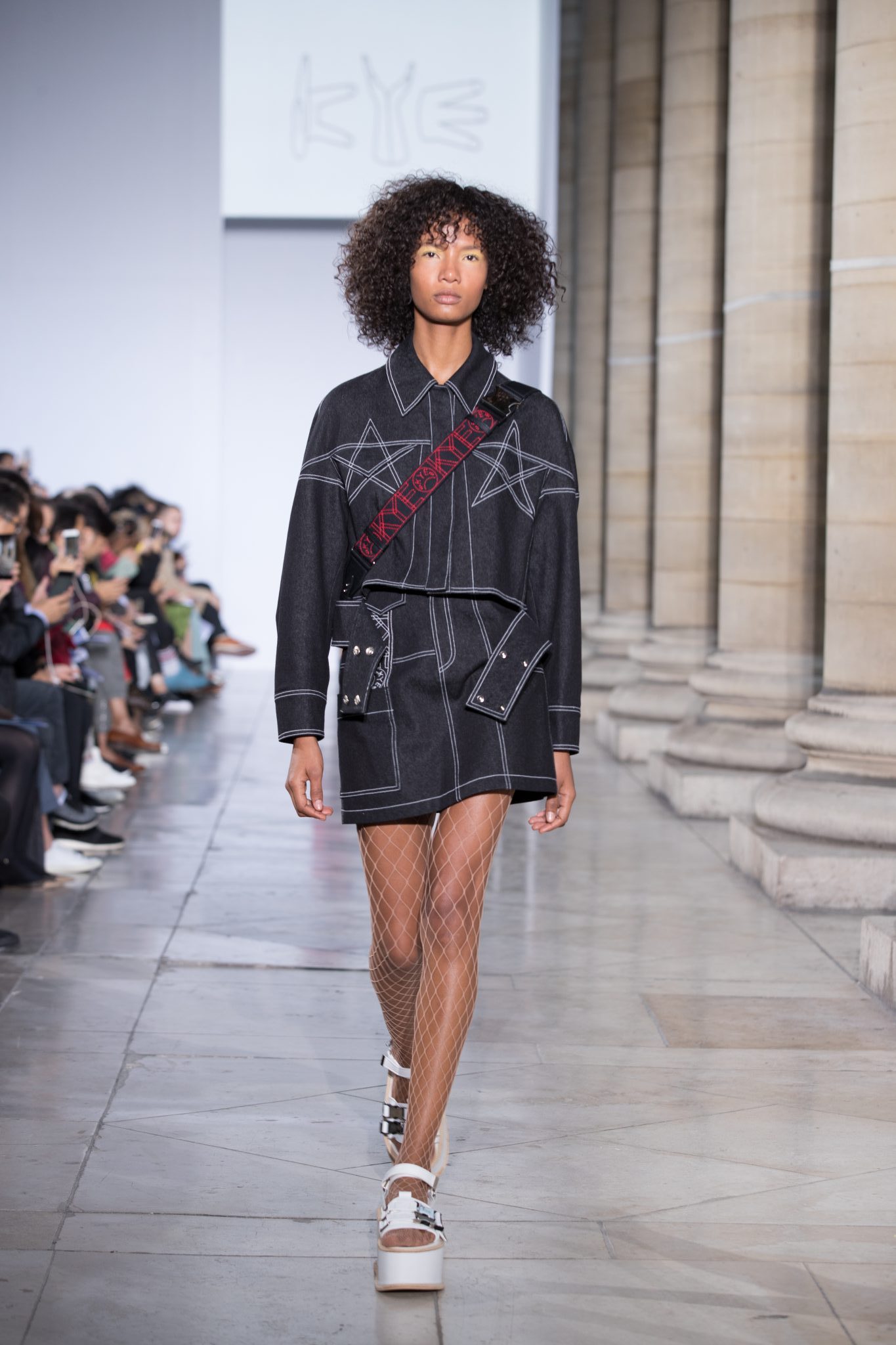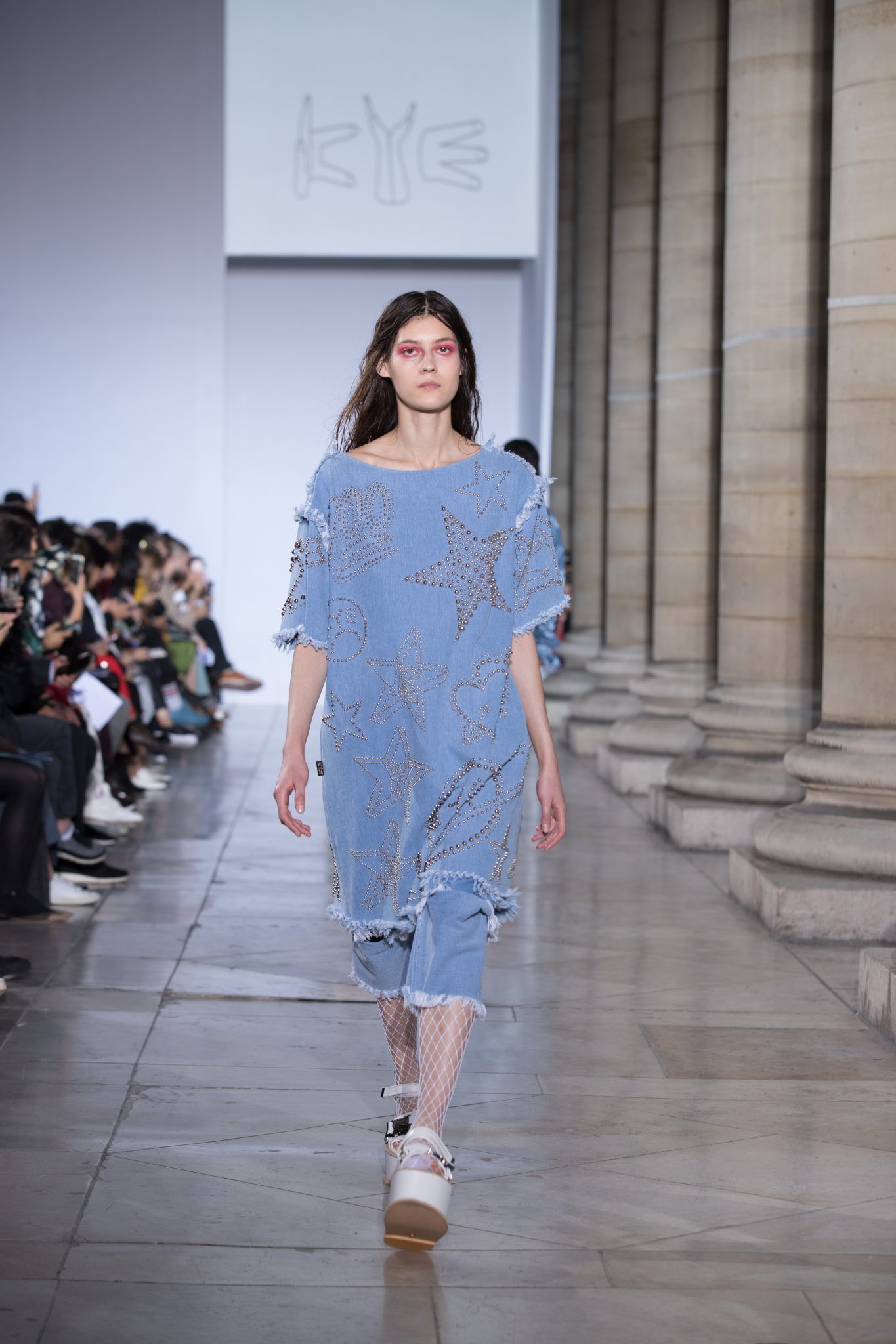 Key (Kim Ki-bum) en est un bon exemple. Reconnu pour son style personnel, il est impliqué dans le processus de création de l’image de son groupe, Shinee. “Il collabore beaucoup à la création des tenues de scène.” Un lien direct qui nourrit et énergise en profondeur les deux industries. On a adoré ses satinés froncés et ses cloutages pop sur denim sur le catwalk.