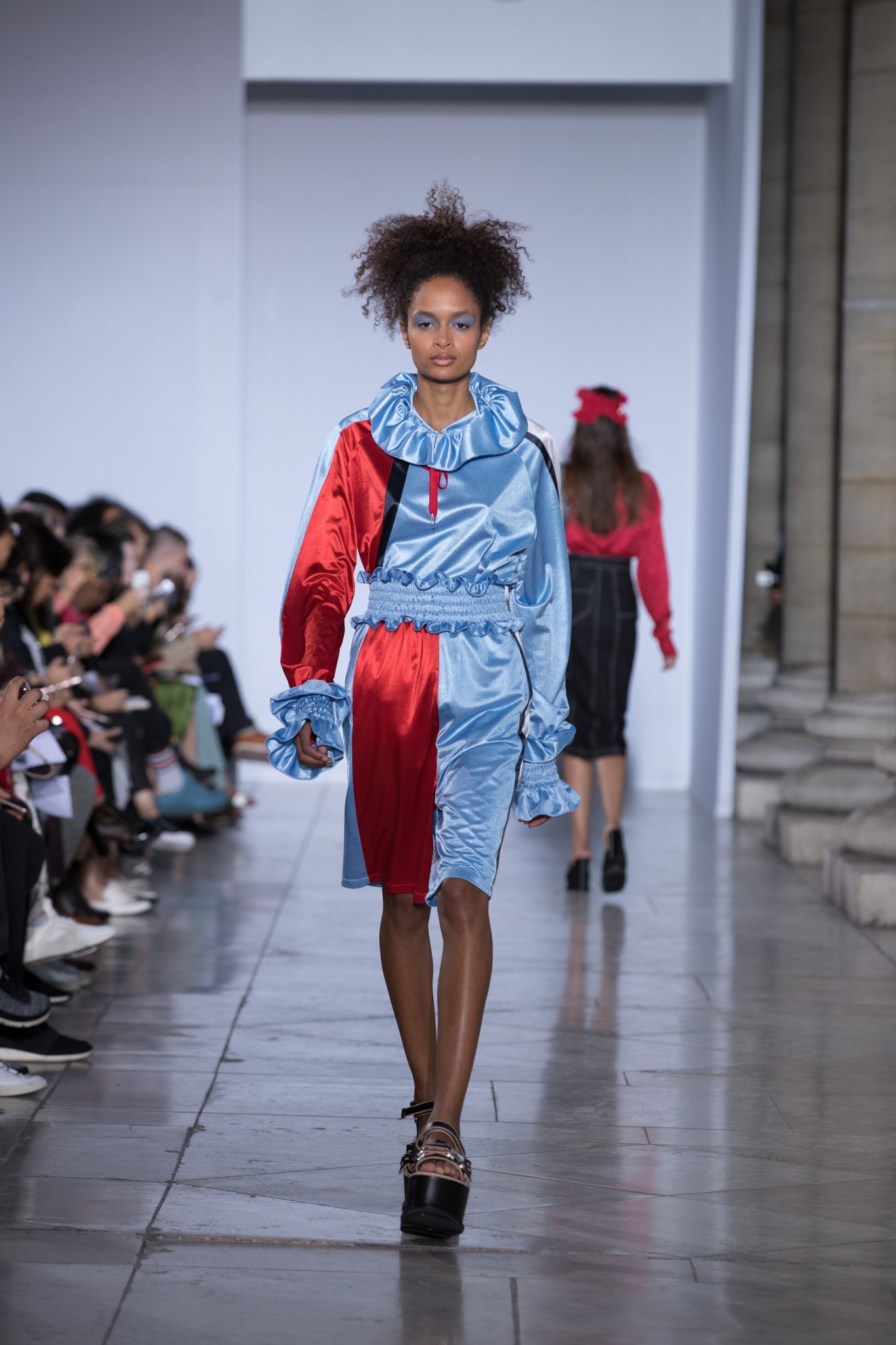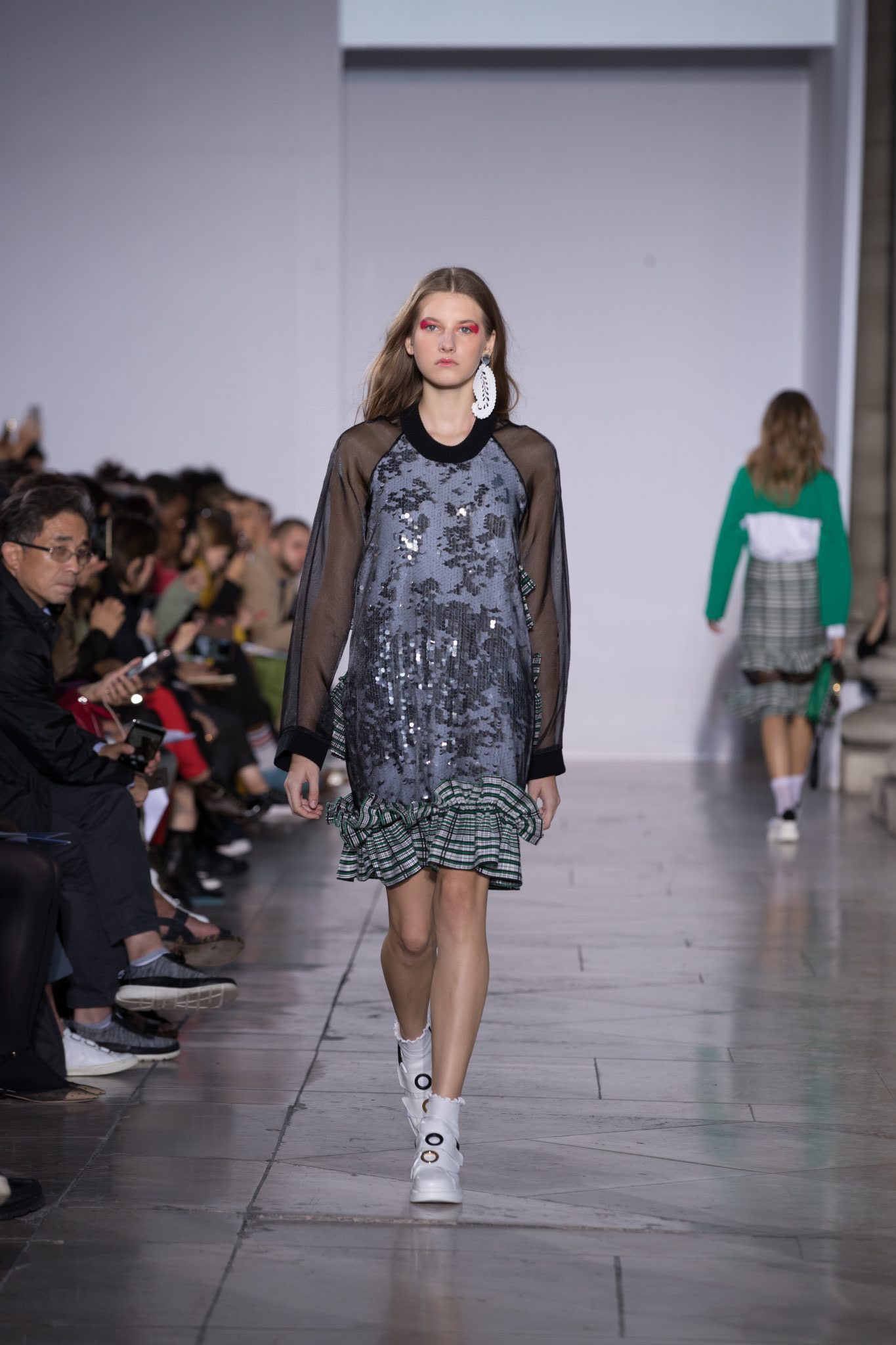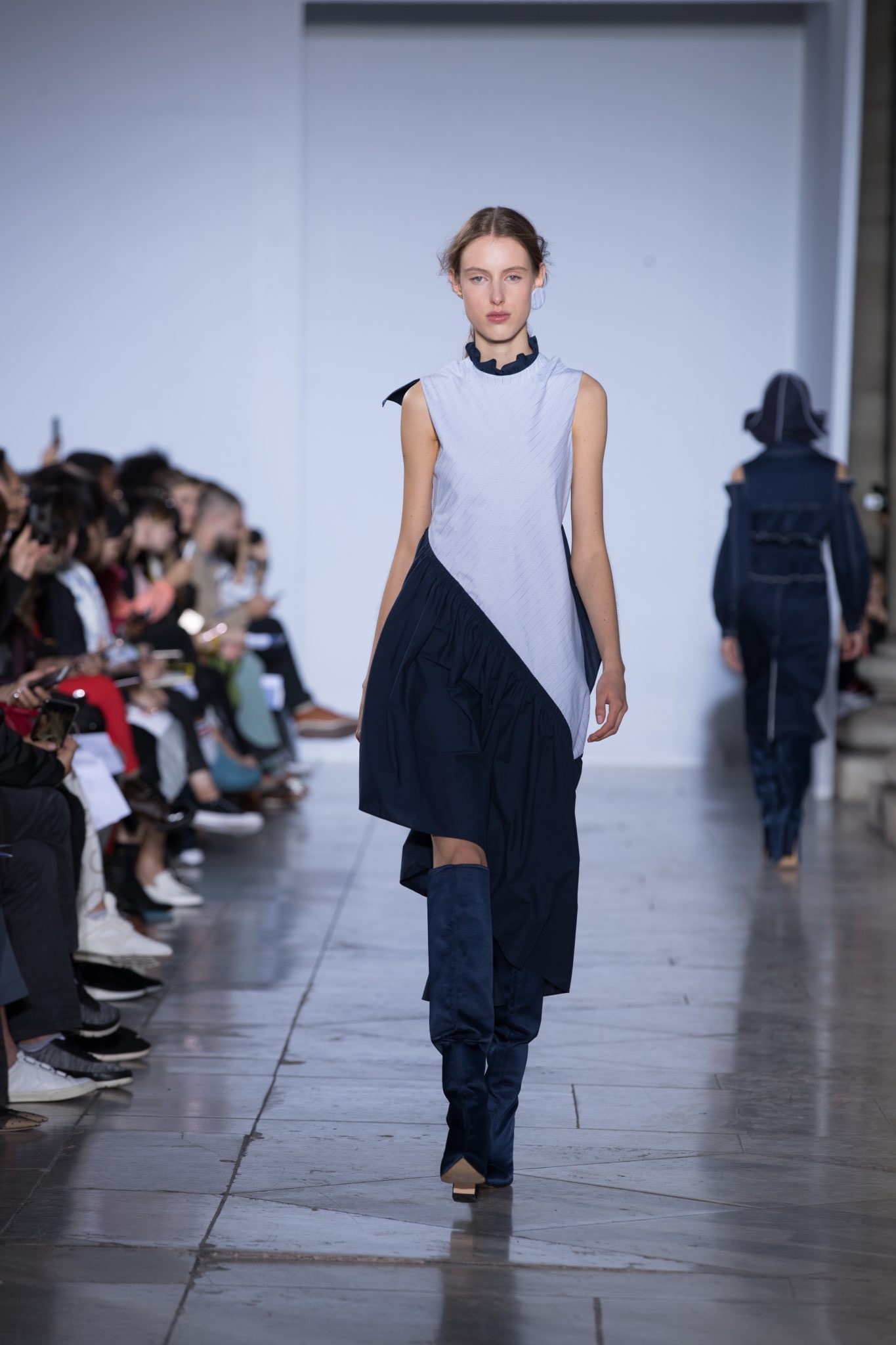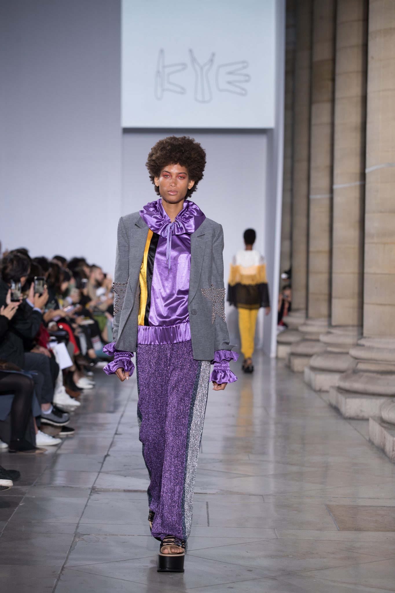 Key (Kim Ki-bum) en est un bon exemple. Reconnu pour son style personnel, il est impliqué dans le processus de création de l’image de son groupe, Shinee. “Il collabore beaucoup à la création des tenues de scène.” Un lien direct qui nourrit et énergise en profondeur les deux industries. On a adoré ses satinés froncés et ses cloutages pop sur denim sur le catwalk.