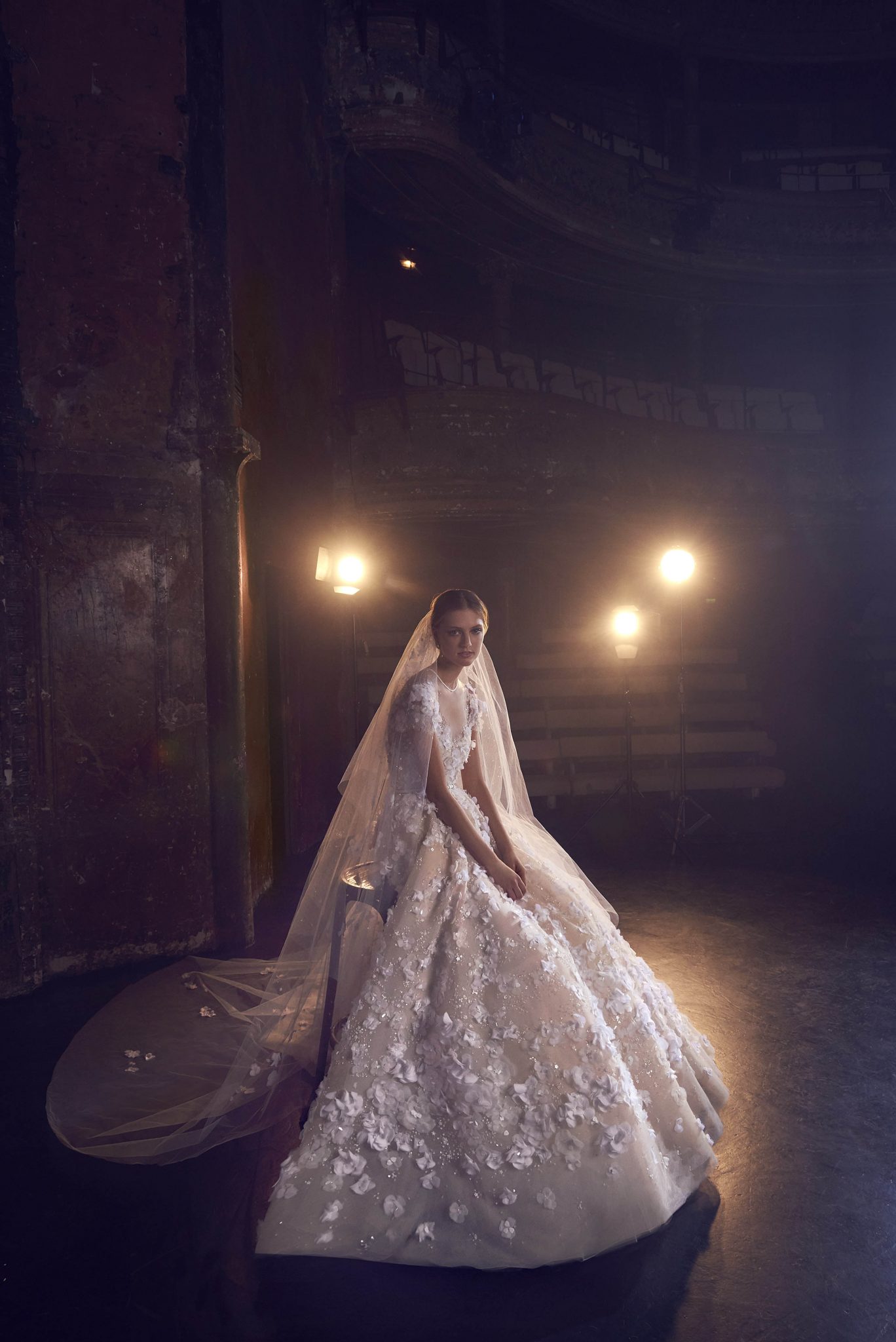 La mariée apparait. La mise en scène de la collection ELIE SAAB Bridal Automne 2018 fait ressortir la finesse du savoir-faire de la maison. Chaque détail dévoile des broderies de perles aussi ornementées qu’éthérées, de délicats appliqués, des sequins cascadant sur du tulle et des superpositions de dentelles. Au centre de cette présentation théâtrale, la mariée se révèle lumineuse et élégante.