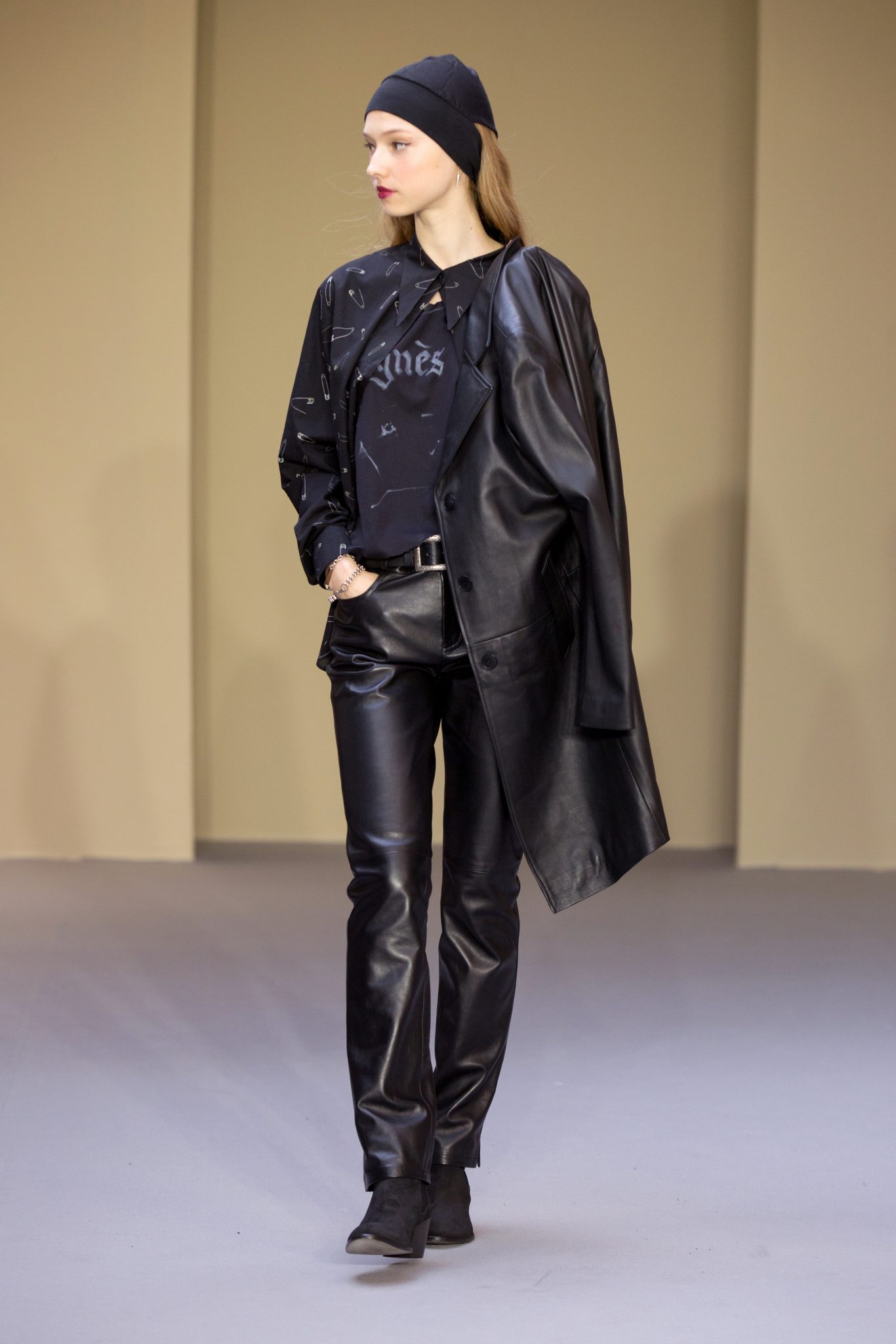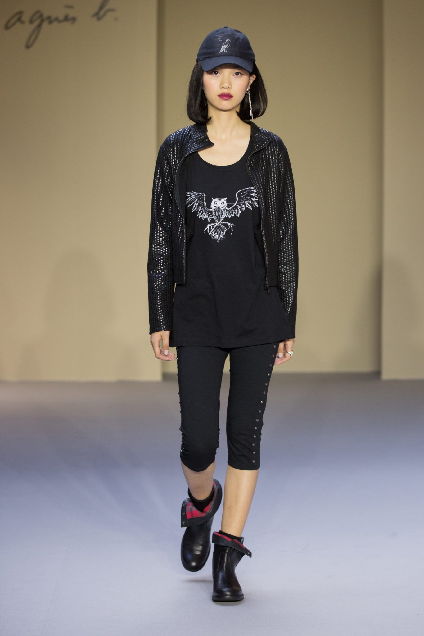 Et comme toujours dans les collections agnès b., un côté rock… et underground, avec du cuir, des t-shirts résille ou à dos filet et à manches extra longues, des leggins cloutés sur les côtés et des casquettes ornées de pointes… et les dessins d’Adrien Beau : nos nouveaux logos !