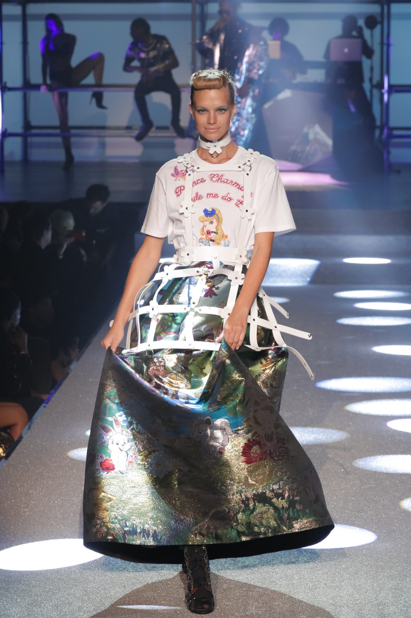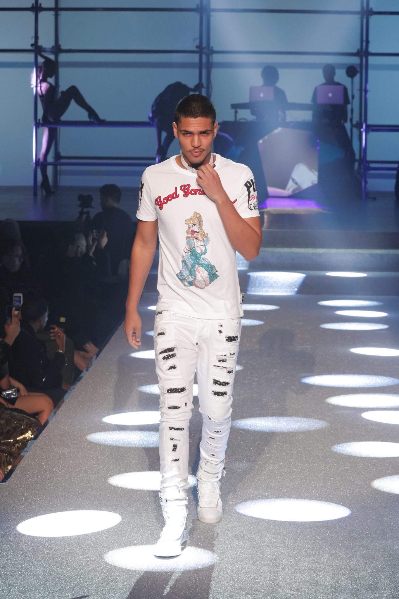 L’extravagant Philipp Plein présentait à New York son défilé dans le cadre historique du Hammerstein Ballroom. Une folie disco s’est emparé du show alors de Dita Von Teese a présenté son numéro « Martini Glass », puis Future a enflammé la salle et les mannequins ont mis le feu. Une collection proche des contes de fées, des princesses et des dessins animés.