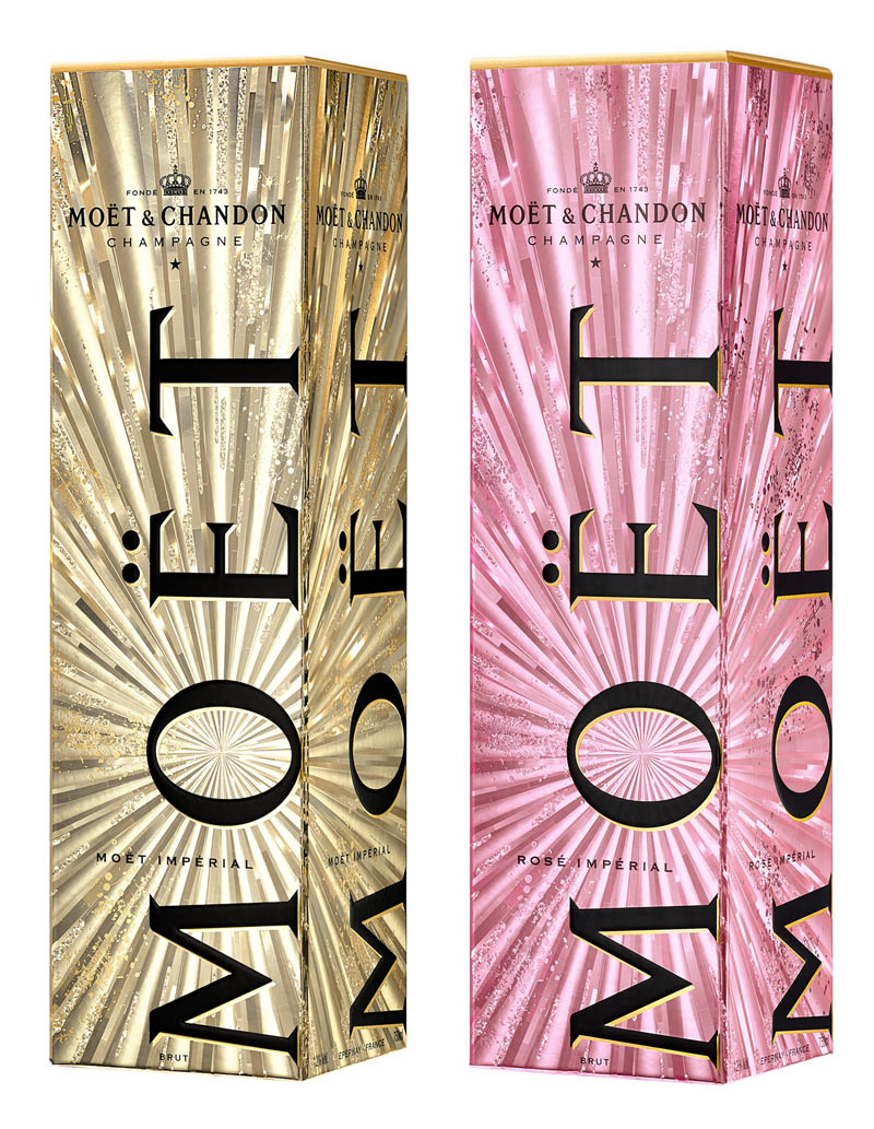 Des coffrets inédits, bouteilles habillées d’un manteau doré aux éclats brillants ou Jéroboams métallisés revêtus de feuille d’or, Moët Impérial blanc ou Moët Imperial Rosé s’invitent aux fêtes de fin d’année.