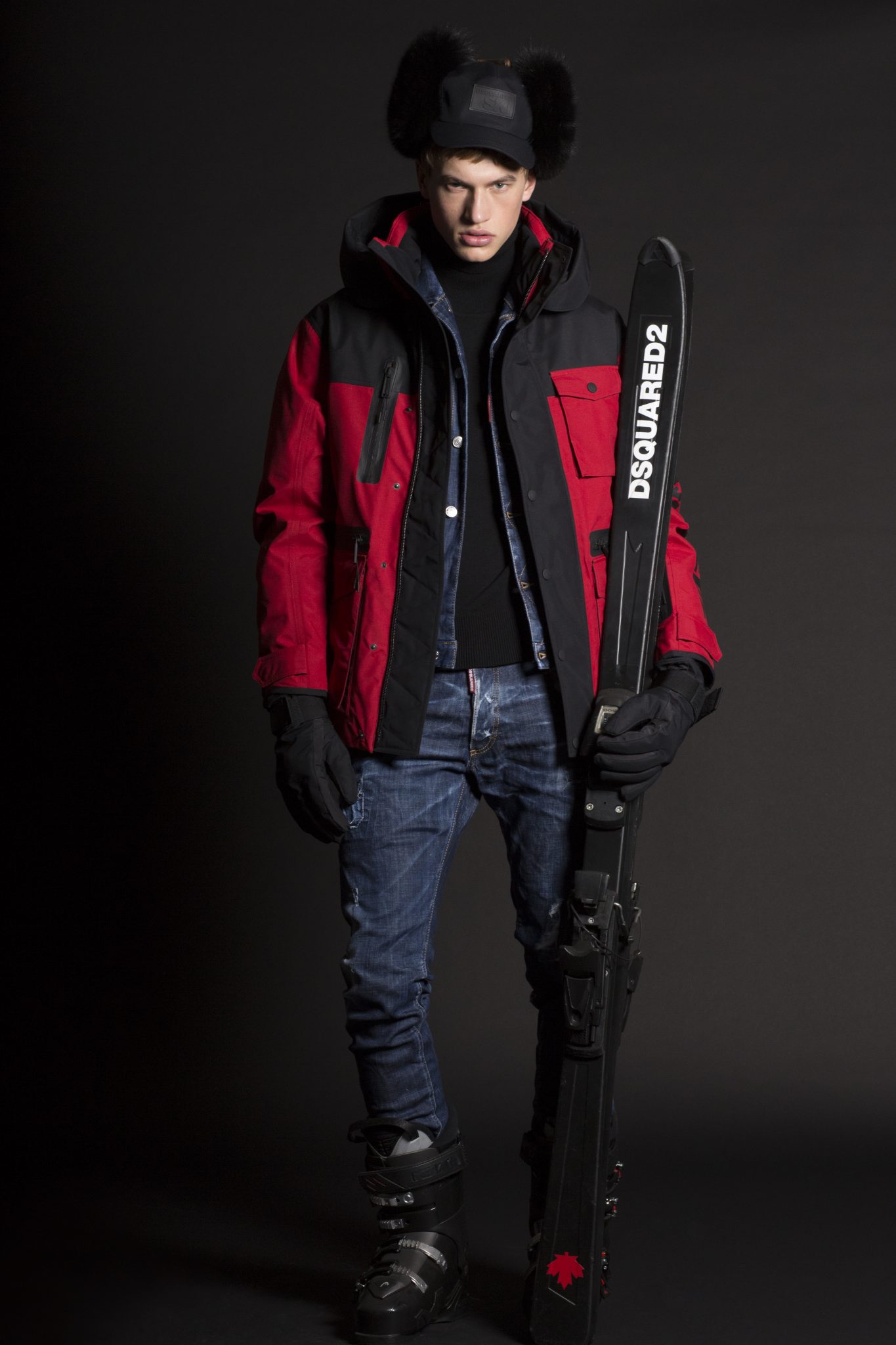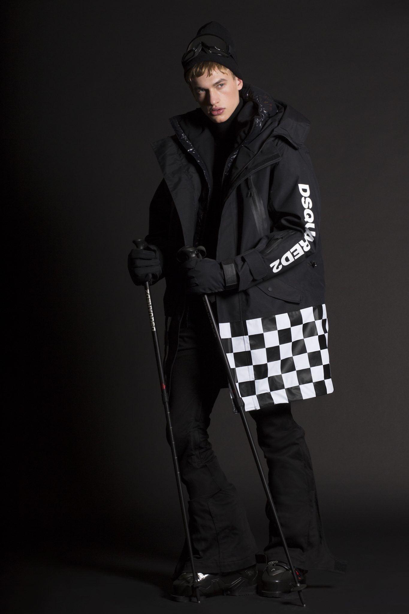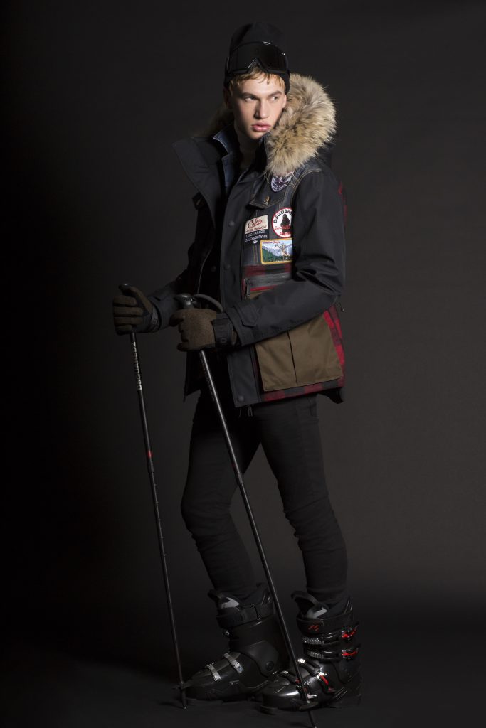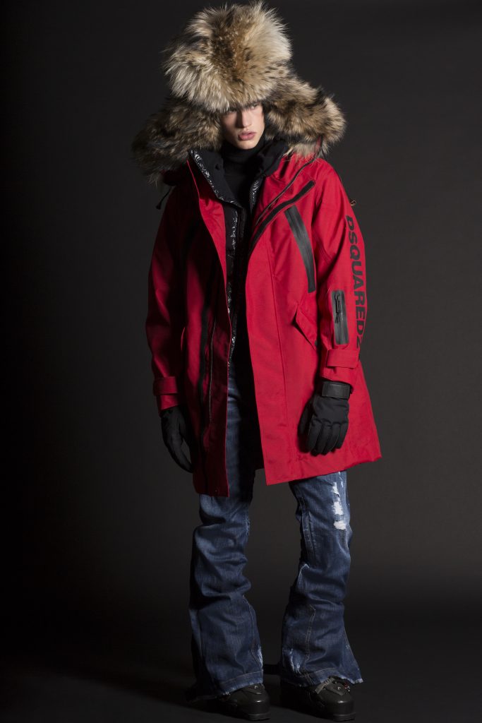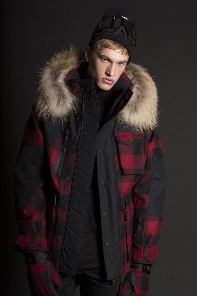 Le style Dsquared2 est présent dans des coupes et tissus emblématiques. L’inspiration des défilés Dsquared2 est mêlée à des tissus de performance supérieure, comprenant de longues parkas ou des combinaisons oversizes, avec en détails des poches thermiques et des fermetures. Les manteaux et les pantalons sont élaborés à partir de textiles thermiques ultra légers qui conservent la chaleur à des températures extrêmement basses et qui protègent également des intempéries. La collection révèle une influence de la culture « Mod » anglaise avec des damiers noirs et blancs mélangés à des notes de rouge. Dsquared2 a créé une veste à la fois pour hommes et femmes avec un mélange de tissus et l’emblème de l’héritage canadien de la marque : des carreaux rouge et noir, des broderies arborant un style voyageur ainsi que du denim. Pour l’approche mixte, Dsquared2 a créé un micro imprimé floral apparaissant sur une combinaison de style bustier pour la femme et une parka oversize pour l’homme.