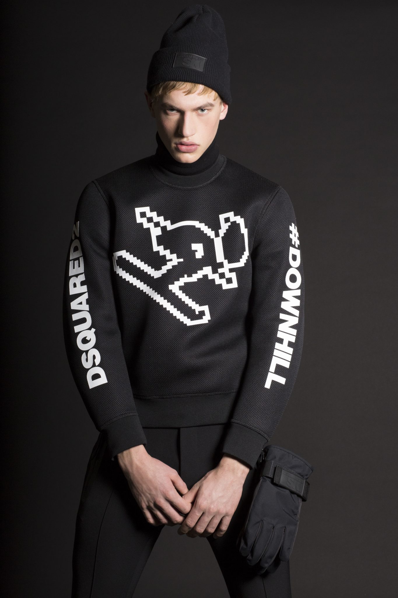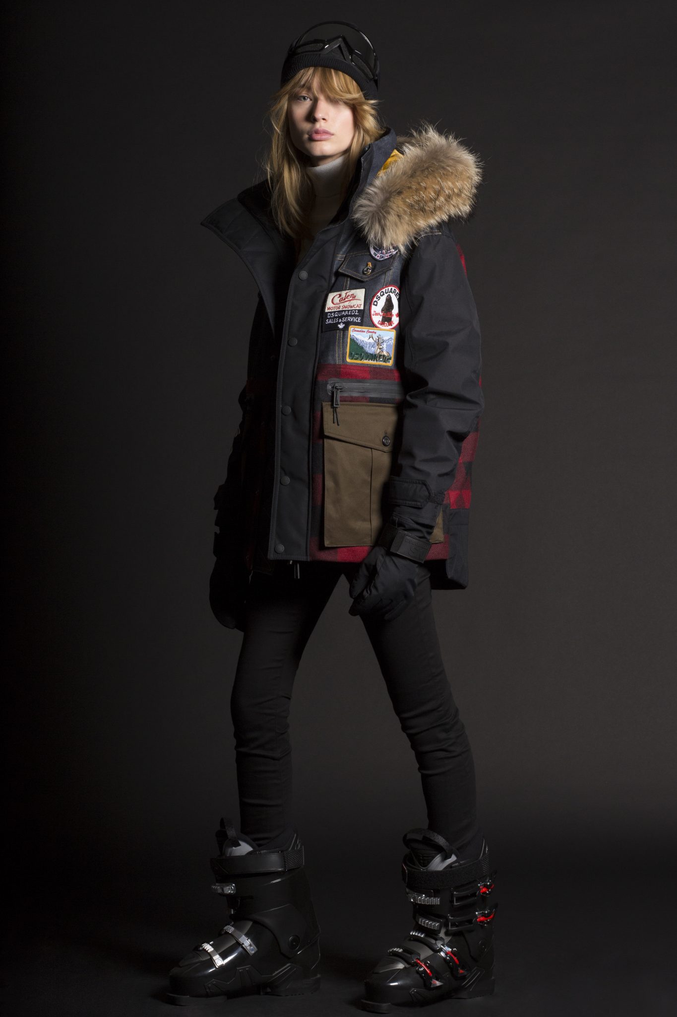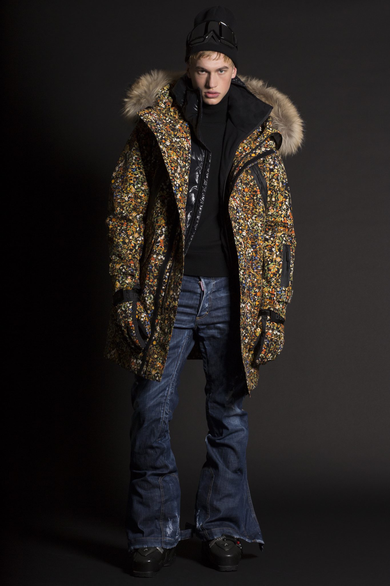 Le style Dsquared2 est présent dans des coupes et tissus emblématiques. L’inspiration des défilés Dsquared2 est mêlée à des tissus de performance supérieure, comprenant de longues parkas ou des combinaisons oversizes, avec en détails des poches thermiques et des fermetures. Les manteaux et les pantalons sont élaborés à partir de textiles thermiques ultra légers qui conservent la chaleur à des températures extrêmement basses et qui protègent également des intempéries. La collection révèle une influence de la culture « Mod » anglaise avec des damiers noirs et blancs mélangés à des notes de rouge. Dsquared2 a créé une veste à la fois pour hommes et femmes avec un mélange de tissus et l’emblème de l’héritage canadien de la marque : des carreaux rouge et noir, des broderies arborant un style voyageur ainsi que du denim. Pour l’approche mixte, Dsquared2 a créé un micro imprimé floral apparaissant sur une combinaison de style bustier pour la femme et une parka oversize pour l’homme.