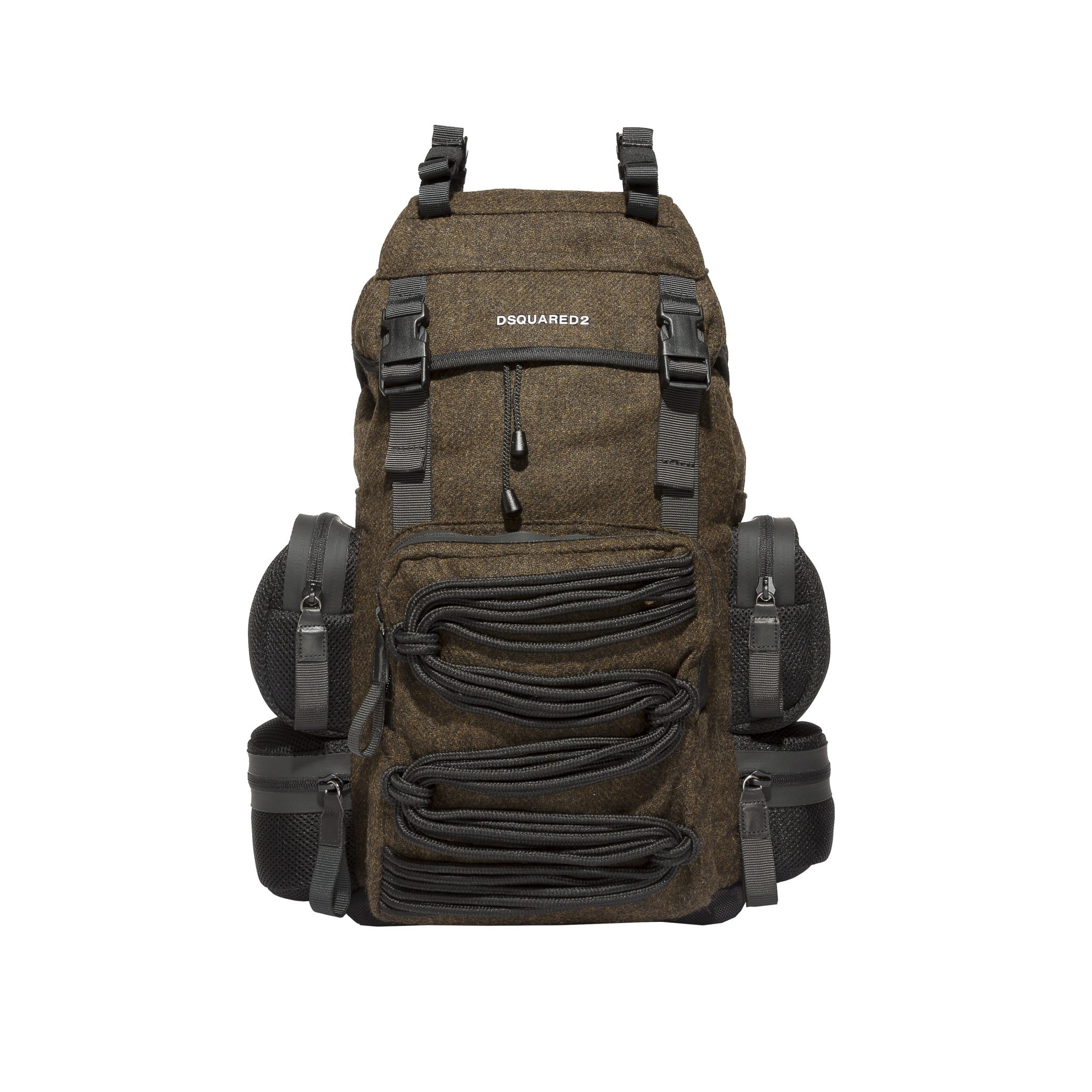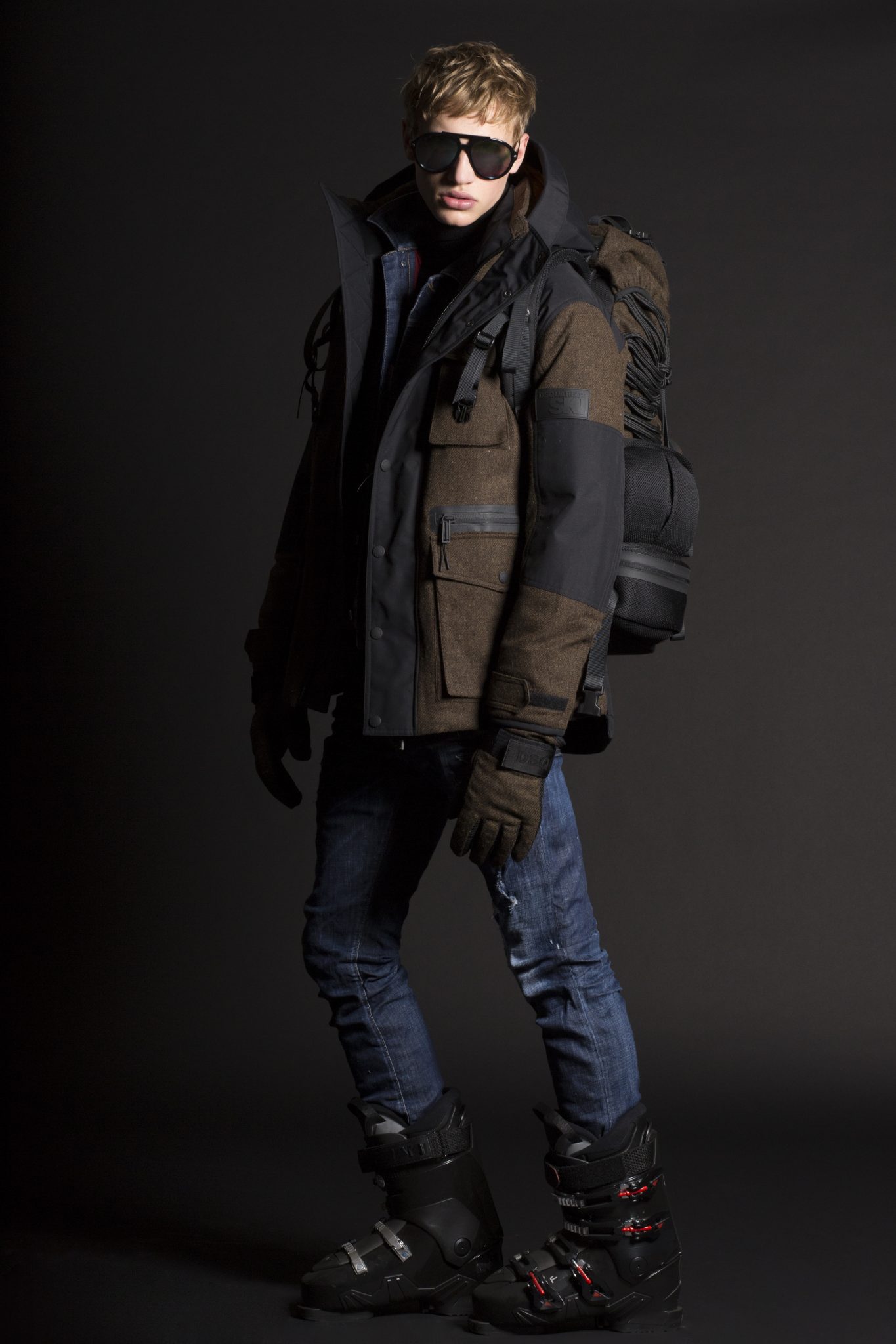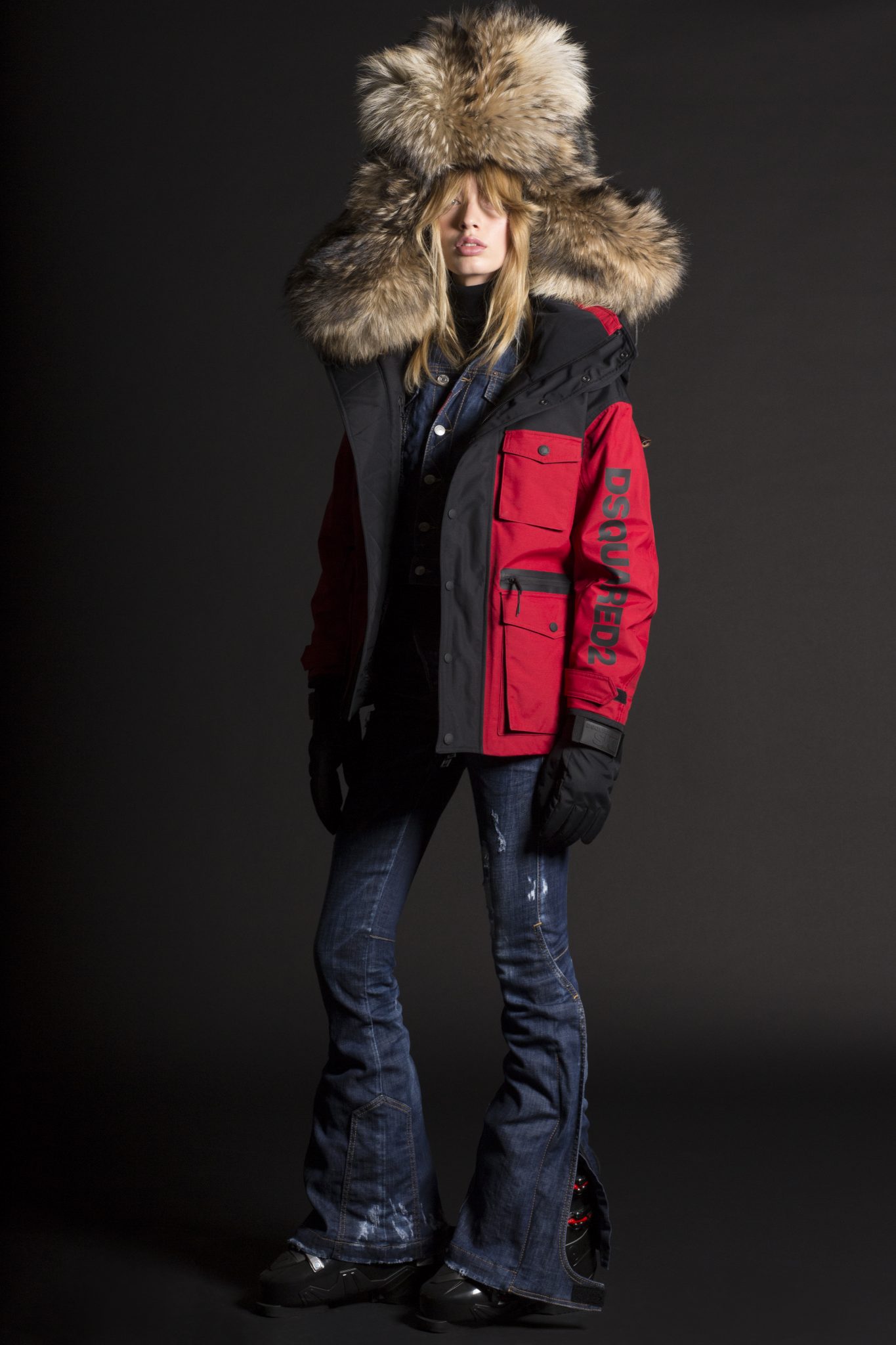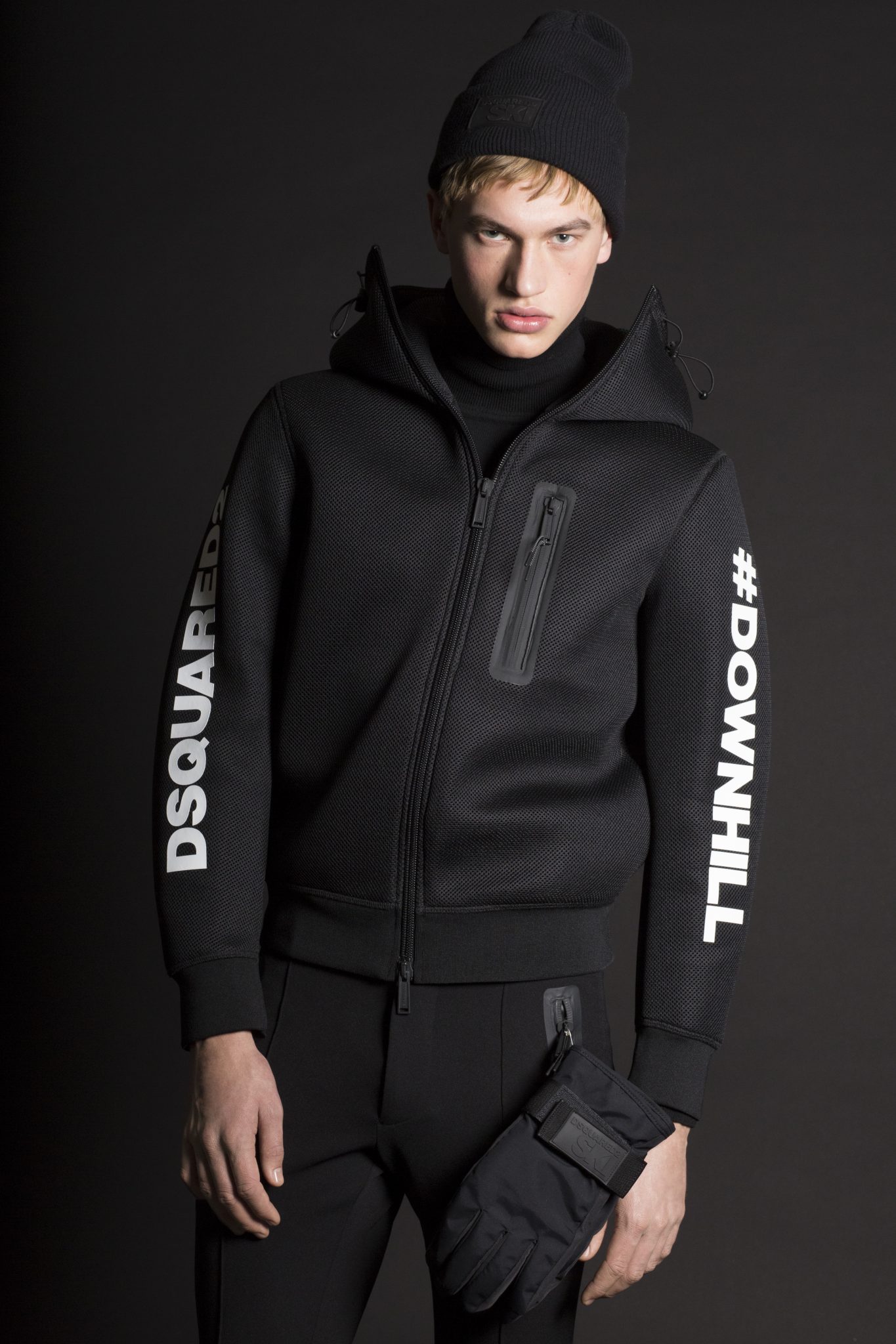Le style Dsquared2 est présent dans des coupes et tissus emblématiques. L’inspiration des défilés Dsquared2 est mêlée à des tissus de performance supérieure, comprenant de longues parkas ou des combinaisons oversizes, avec en détails des poches thermiques et des fermetures. Les manteaux et les pantalons sont élaborés à partir de textiles thermiques ultra légers qui conservent la chaleur à des températures extrêmement basses et qui protègent également des intempéries. La collection révèle une influence de la culture « Mod » anglaise avec des damiers noirs et blancs mélangés à des notes de rouge. Dsquared2 a créé une veste à la fois pour hommes et femmes avec un mélange de tissus et l’emblème de l’héritage canadien de la marque : des carreaux rouge et noir, des broderies arborant un style voyageur ainsi que du denim. Pour l’approche mixte, Dsquared2 a créé un micro imprimé floral apparaissant sur une combinaison de style bustier pour la femme et une parka oversize pour l’homme.