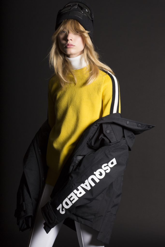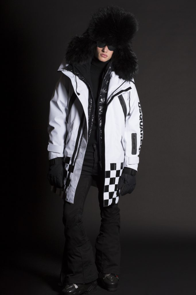 En sillonnant les montagnes de St. Moritz, Aspen et Banff, la collection ski Dsquared2 apporte un style glamour aux clubs et pistes de ski les plus chics. Les silhouettes rétro, les couleurs audacieuses et sportives ainsi que les détails modernes de performance définissent la collection Dsquared2 Ski 2017. Elégantes et sportives, les formes d’inspiration vintage rencontrent des détails techniques qui privilégient toujours la fonction pratique. Façonnées de la signature Dsquared2, les pièces pour hommes et femmes sont conçues pour les snowboarders, les skieurs ou encore ceux qui préfèrent les moments post-piste.