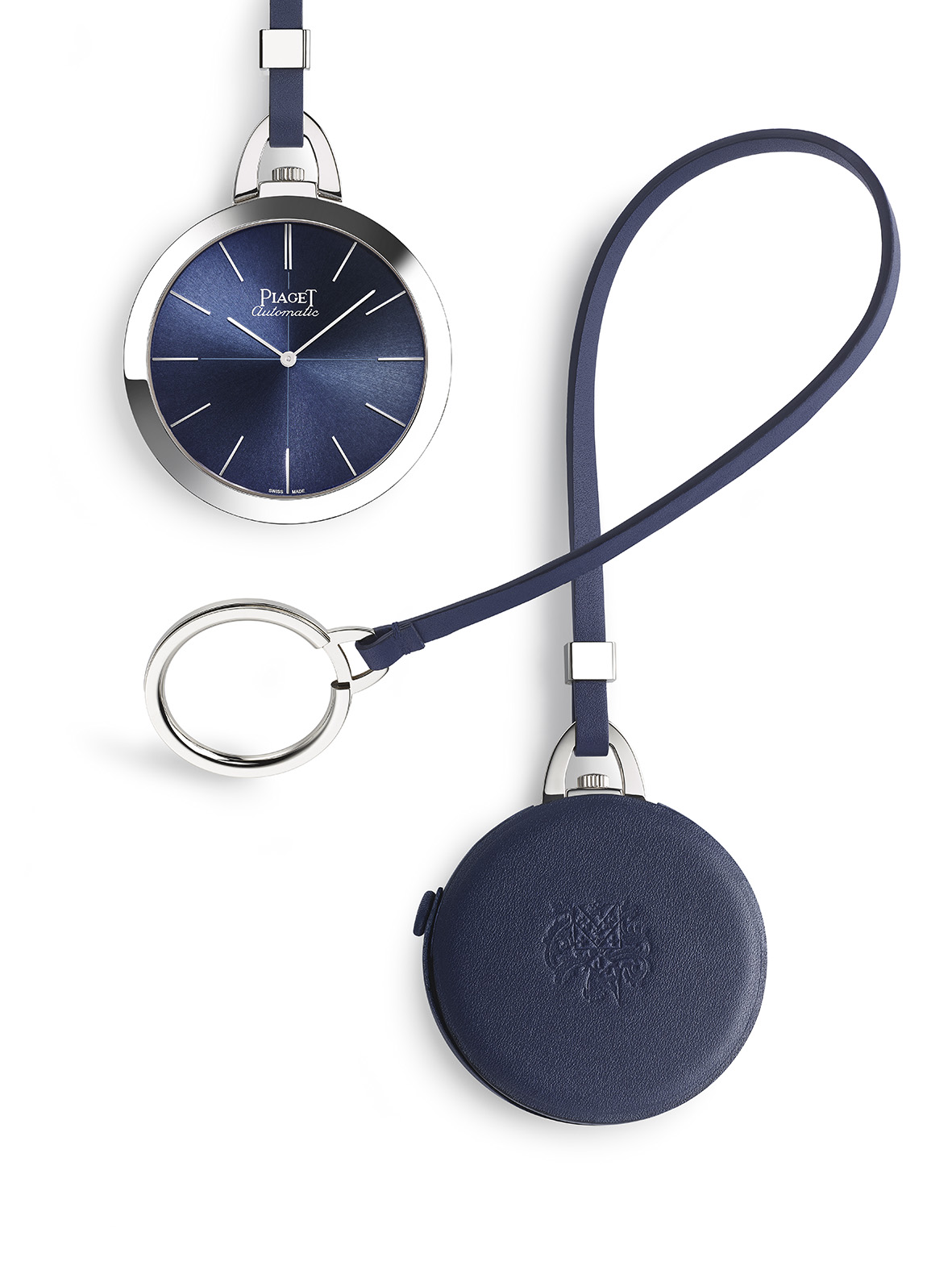 style. Liée à un lacet en cuir de veau bleu, la montre à gousset réussit le délicat équilibre entre une