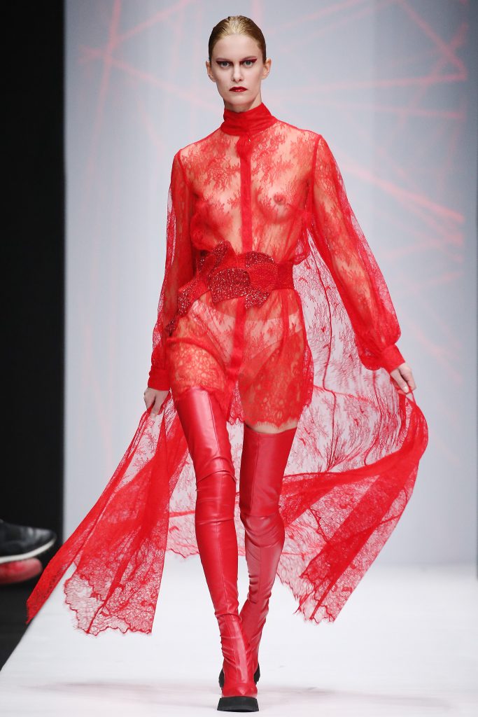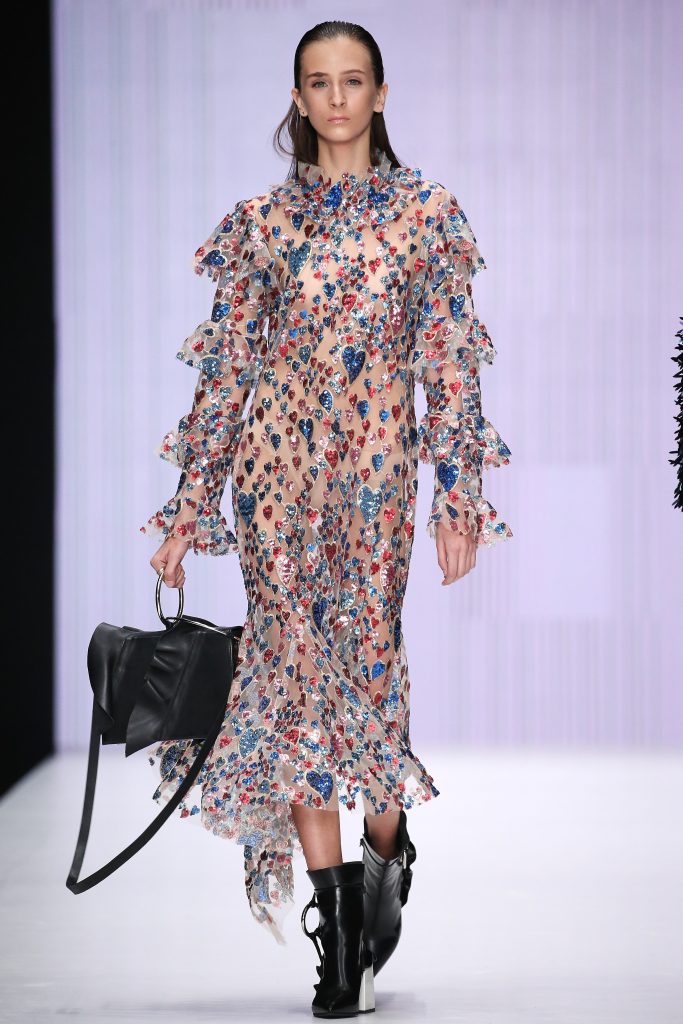 Du 21 au 24 octobre dernier, Mercedes-Benz déployait podiums, mannequins, photographes et nuages de laque à Moscou pour la  35 sème saison consécutive. Une Fashion Week  sous le signe de la modernité ou les jeunes créateurs ont été mis en avant. Le combat contre le SIDA à lui aussi pris une large place, alors que le nombre de personnes touchées par la maladie ne cesse d’augmenter. Parallèlement le système Russe réprimande les manifestations des activistes LGBT, et les homosexuels sont victimes des tortures et même de purges ( Tchétchénie, mai 2017). Des violences inacceptables, qui se traduisent dans des mouvements politisés mais aussi dans la culture et les vêtements. Peut-on encore porter des paillettes, du turquoise, multiplier les broderies et ornements  alors que la Russie crie pour le changement ?