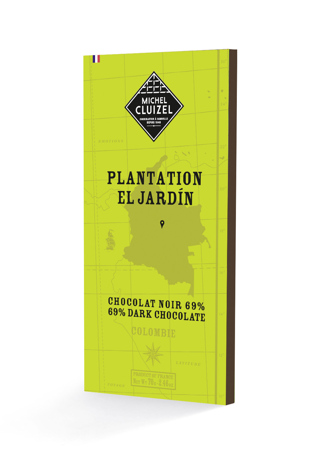 A la gamme actuelle vient s’ajouter une nouvelle plantation, au nom évocateur : El Jardín, située à Fuente de Oro, dans les plaines de l’Ariari au cœur de la Colombie. De ces fèves, qui puisent dans le terroir leurs spéci cités organoleptiques, CLUIZEL en a fait une nouvelle tablette de Plantation. A la dégustation, le voyage se poursuit : notes de miel, de fruits rouges et de caramel s’harmonisent en bouche à des notes grillées et poivrées, et s’achève sur une nale délicatement mentholée et fraîche…