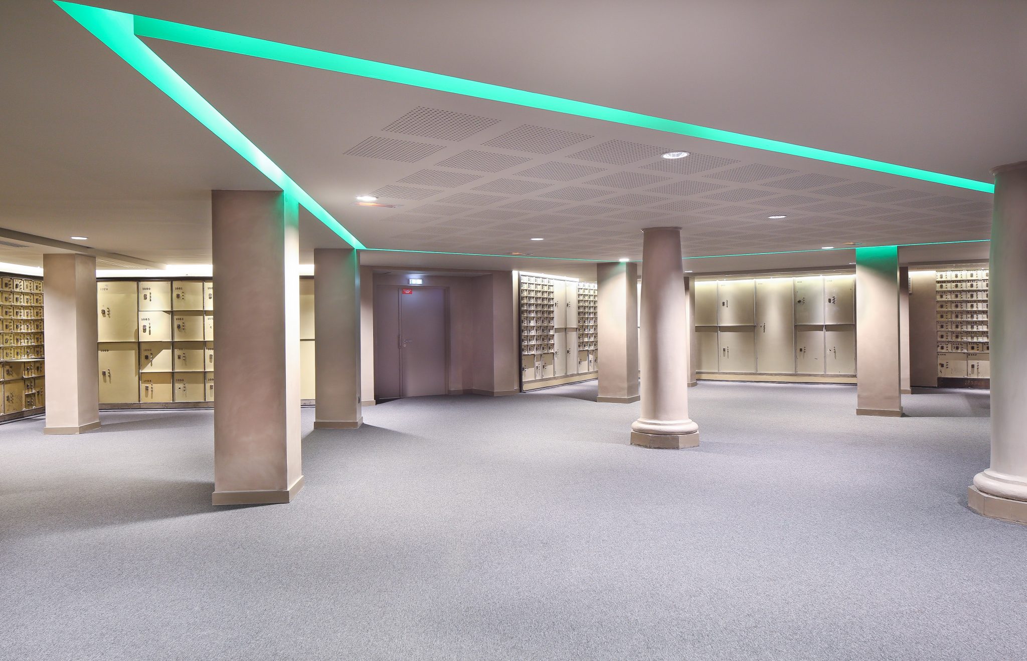 Joyau entre les joyaux, la salle des Coffres nécessitait une mise aux normes, pour pouvoir accueillir du public à grande échelle. C’est chose faite après plusieurs mois de travaux, couronnés par l’agrément de la Préfecture de Paris. Dorénavant, Cette pièce emblématique de l’ancienne banque, située au sous-sol et dotée d’une entrée indépendante est dorénavant exploitée à des fins commerciales auprès du grand public.
