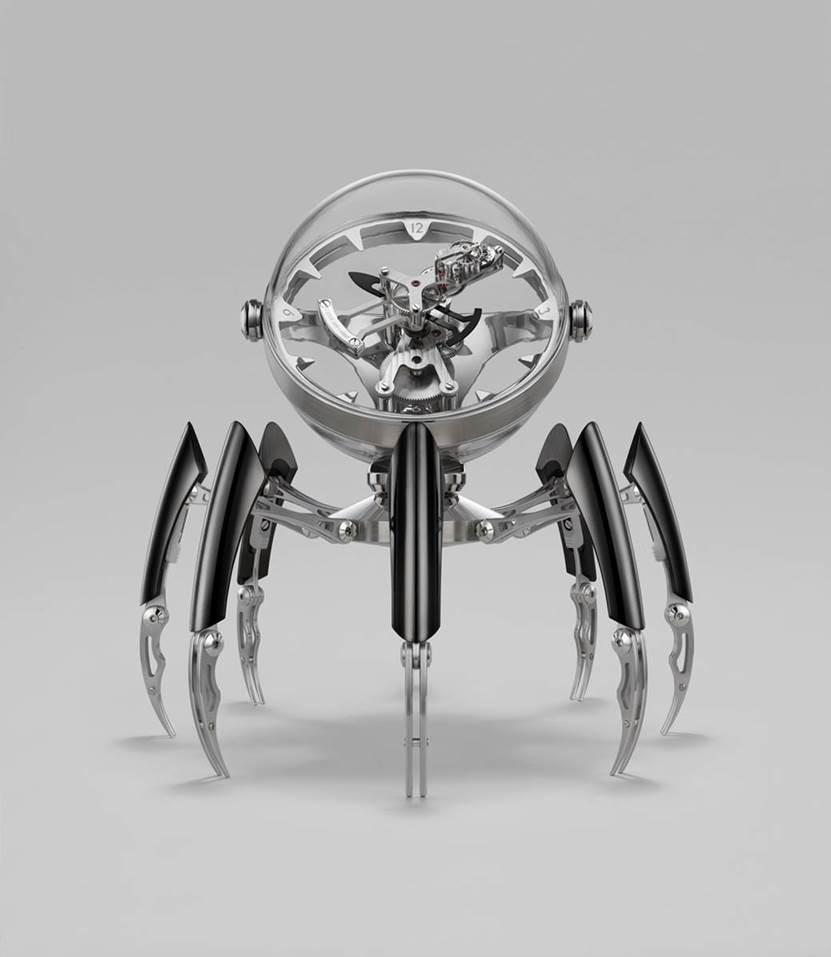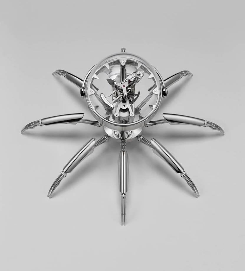 Pieuvres et autres céphalopodes à tentacules, boussoles de marine, la bathysphère du film de 1989 The Abyss… tous ces éléments ont inspiré Octopod, concrétisé par 468 composants de haute horlogerie. Un mélange de design contemporain, de sculpture cinétique et d’horlogerie traditionnelle contenue dans une bulle transparente.