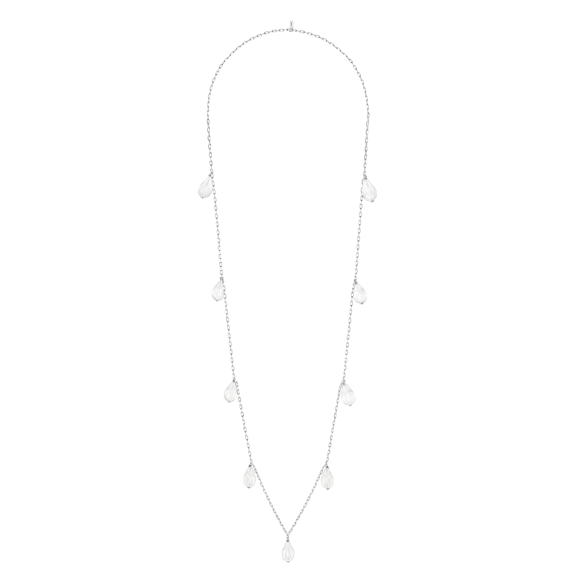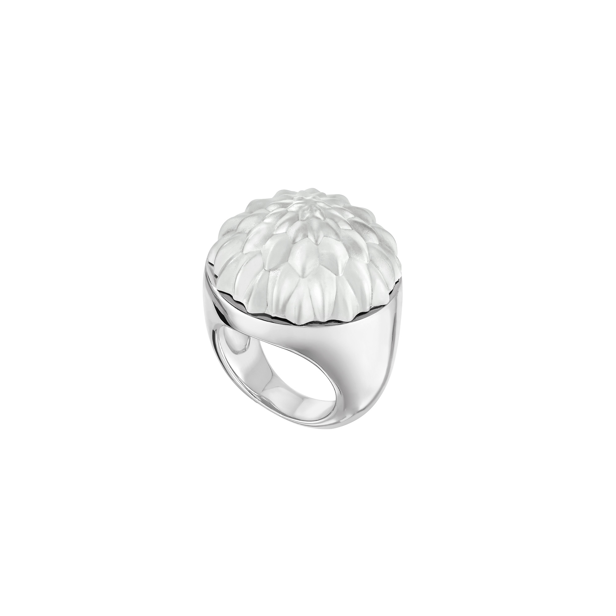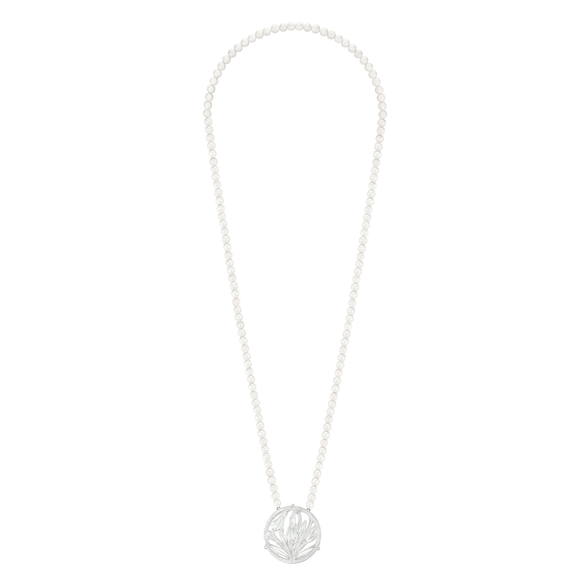 Le cristal Lalique s’anime de reflets nacrés sur ces bijoux faisant écho à la beauté des paysages enneigés. Fleur de Neige se décline sur un médaillon aux bas reliefs perlés évoquant les fines gouttelettes de la fonte des neiges ou sur un motif à six pétales à porter en talisman floral. Une création présentée en collaboration avec l’Opéra National de Paris et inspirée par l’Opéra La Fille de Neige (1882)de Nikolai Rimski-Korsakov.