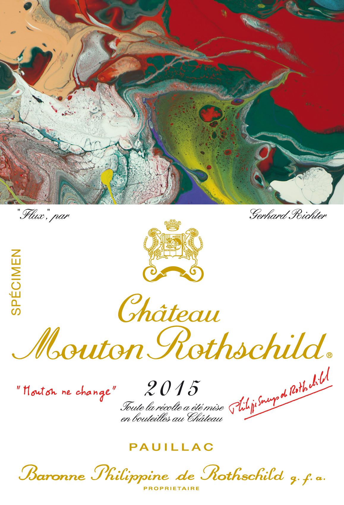Elle est importante. Au-delà de la qualité exceptionnelle du millésime 2015 et de la renommée internationale de l’artiste allemand, Gerhard Richter, Philippe Sereys de Rothschild signera désormais l’étiquette de Mouton Rothschild au nom des trois propriétaires familiaux.