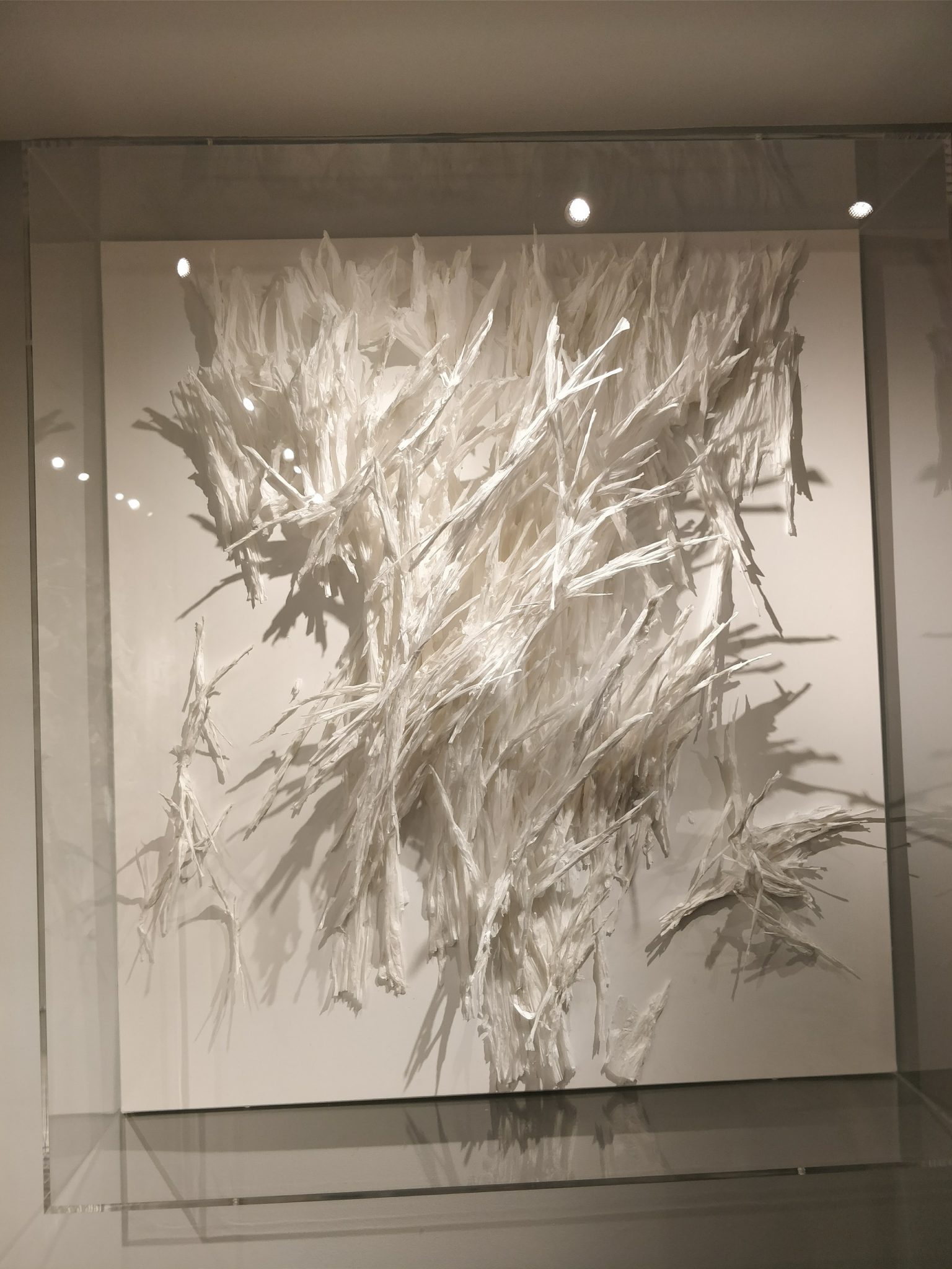 La traversée des Jardins du Palais Royal invite à la contemplation, la beauté, l’harmonie. En poussant la porte du Grand Véfour, le visiteur est sous le charme poétique de la nature, sous l’emprise de sa force et de sa vie. Composée de plusieurs fragments de papier de soie sur toiles, de formats différents, l’œuvre de Claudine Drai est une ode à la nature.