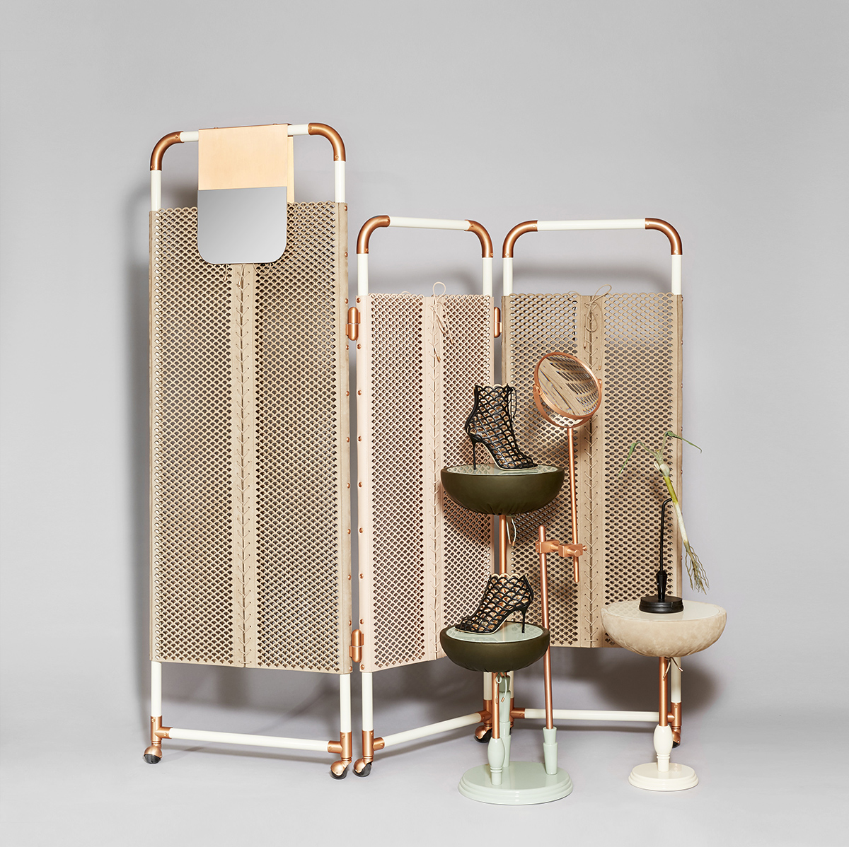 Les références incontestablement liées à la marque sont nombreuses, comme le thème de l’Opanca, les pieds des fauteuils qui rappellent le talon sr1, ou encore le nubuck qui recouvre le cadre des coiffeuses.