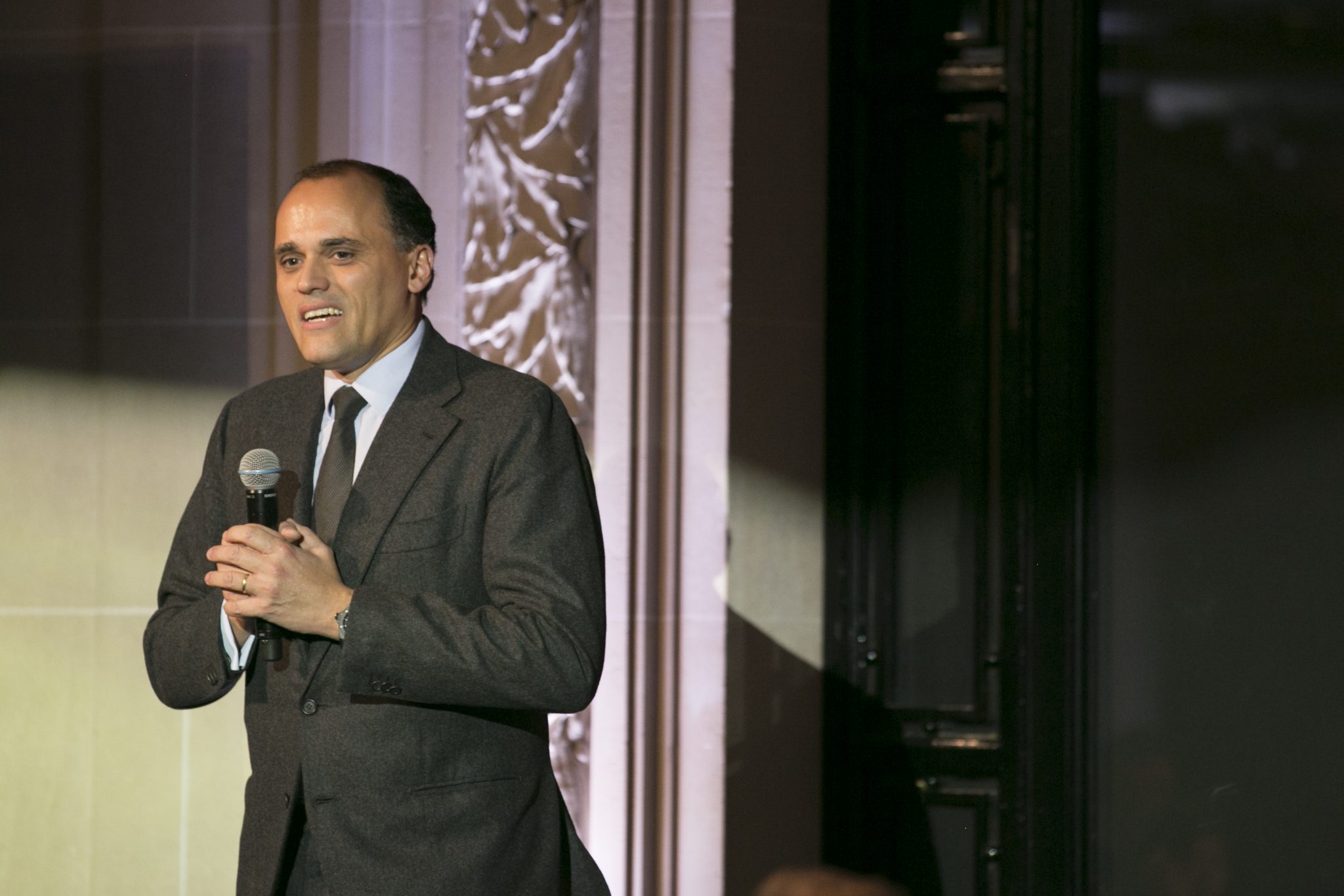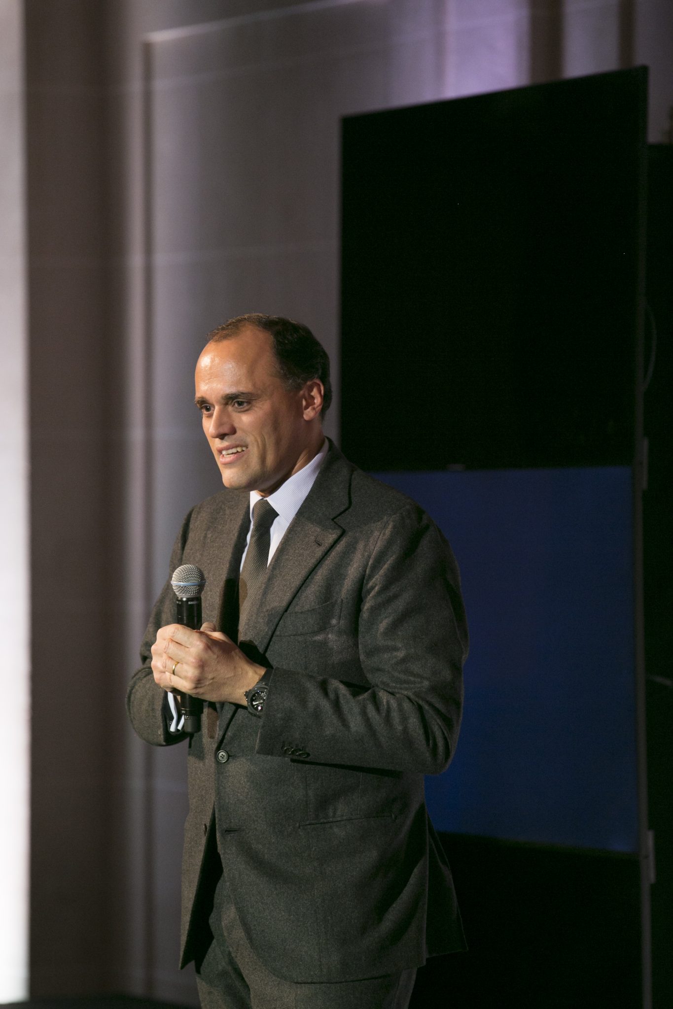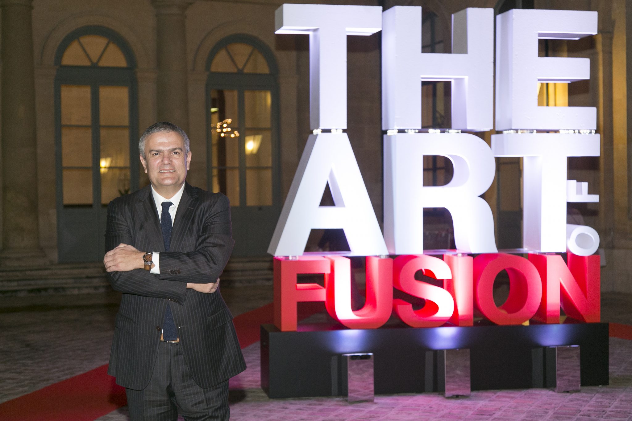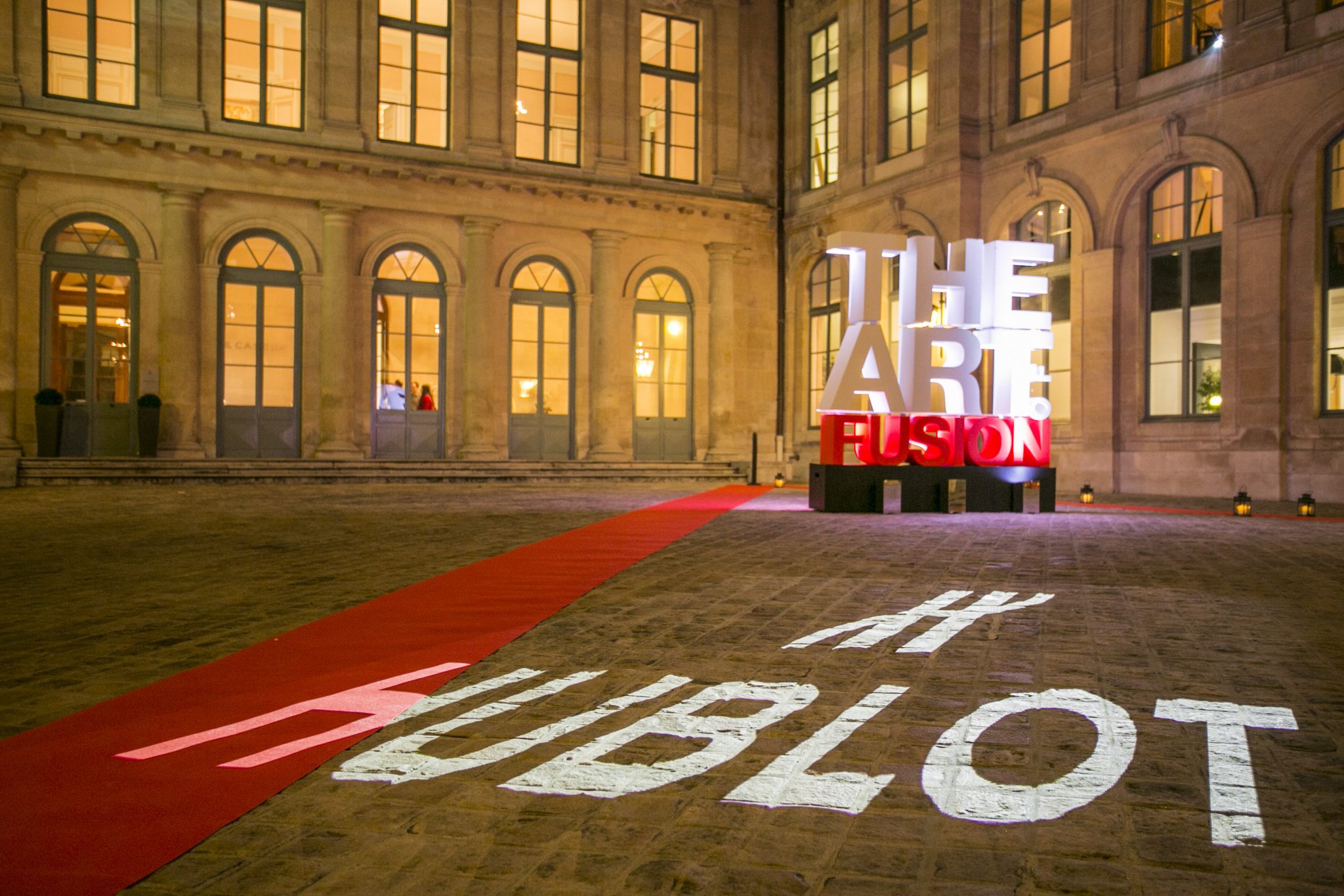 Au son d’un thème musical prenant, véritable fil rouge de la soirée, les invités ont fait leur entrée dans la majestueuse Salle des Tirages de l’Hôtel d’Évreux. Dans cet écrin doté d’un élégant plafond de verre, et sous les hautes fenêtres ornées de frises, s’est dévoilé un décor futuriste dans un dégradé de noirs rehaussant la majesté du lieu. Accueillis par Ariel Wizman, journaliste et comédien français, Maître de Cérémonie de la soirée, les invités ont pris place à table. Goûtant à des mets raffinés, enchantés par un tour de magie en l’honneur de l’Art de la Fusion réalisé par Fred Razon, illusionniste français, tous attendaient le dénouement de cette soirée, la présentation des deux nouveaux garde-temps Hublot et Berluti.