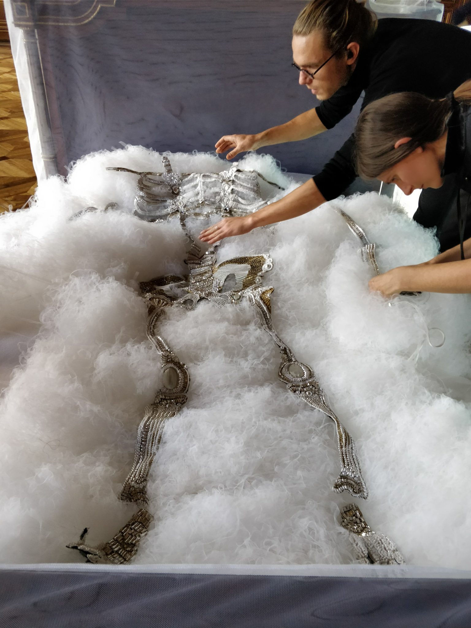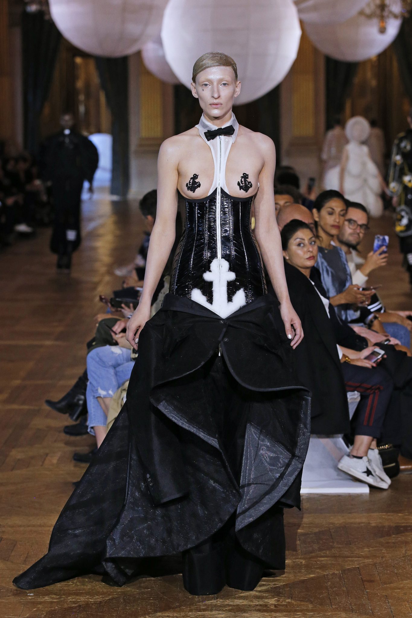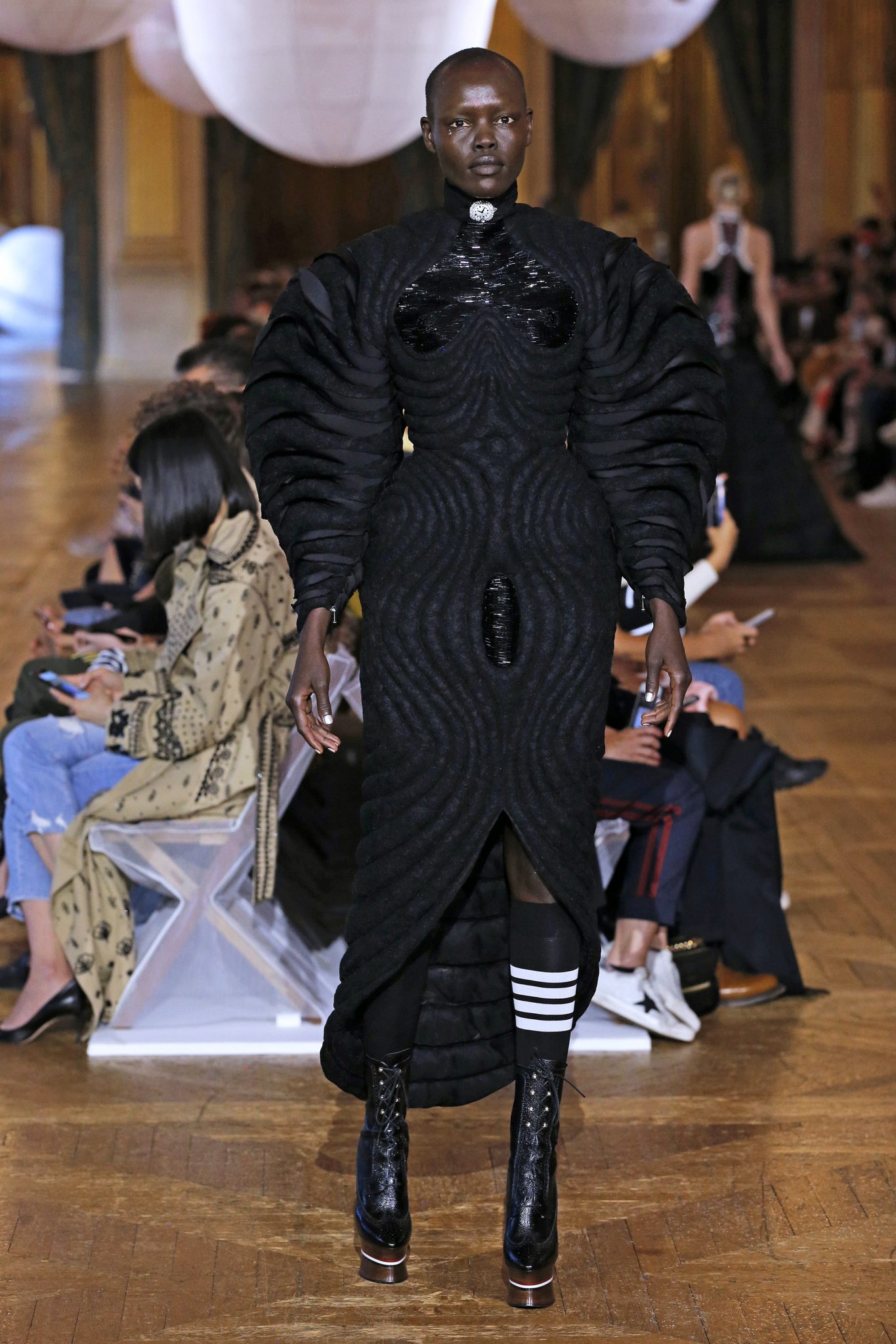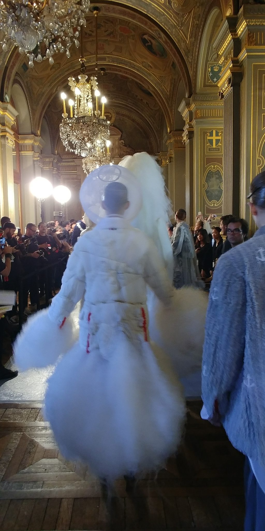 Parlons un peu du contexte, pour cette saison Thom Browne propose « un double rêve, un rêve rêvé d’une autre planète, qui reve d’une autre beauté qui est en fait réalité ». C’est une féérie majestueuse aux personnages fantasques ornés de tulles, de légéreté, comme si ils flottaient.