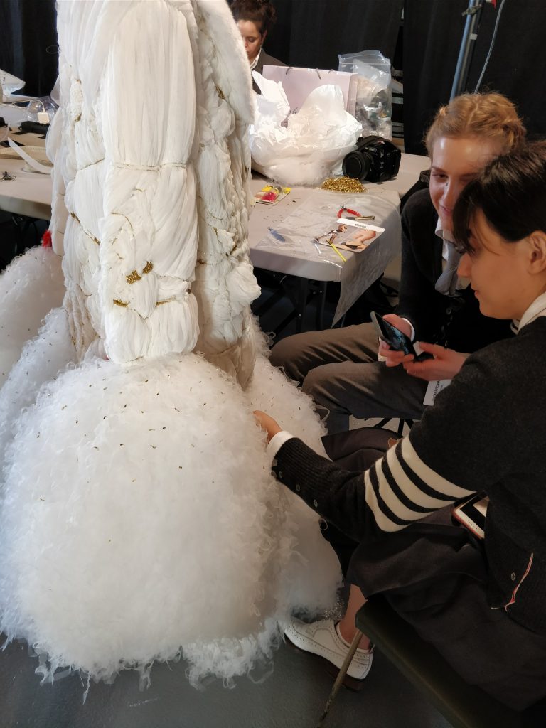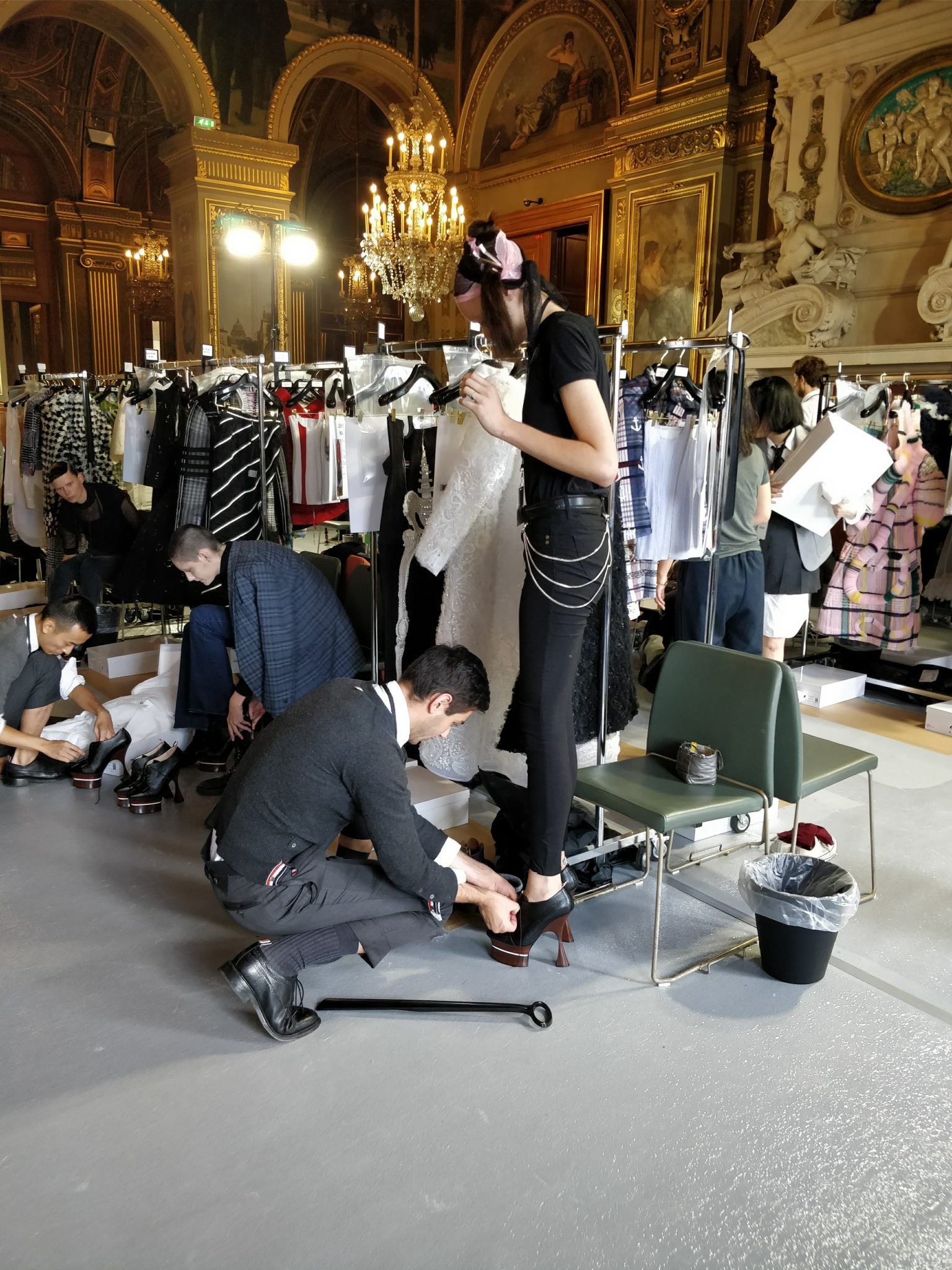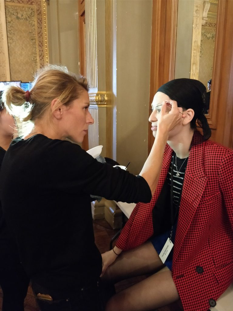 Pour cette collection Printemps Eté 2018, rendez vous été donné avec les équipes de Wella pour vivre une aventure unique : vivre le défilé depuis les coulisses et assister au maquillage et au coiffage des mannequins. Autant vous dire que nous étions excités comme des enfants d’assister à ce premier show femme de la marque à Paris. Sans doute l’un des moments les plus attendus de cette dernière fashion week car il n’y avait que très peu de places, le défilé était dans un cadre merveilleux et surtout c’était la premiere fois que Thom Browne défilait pour la femme à Paris !