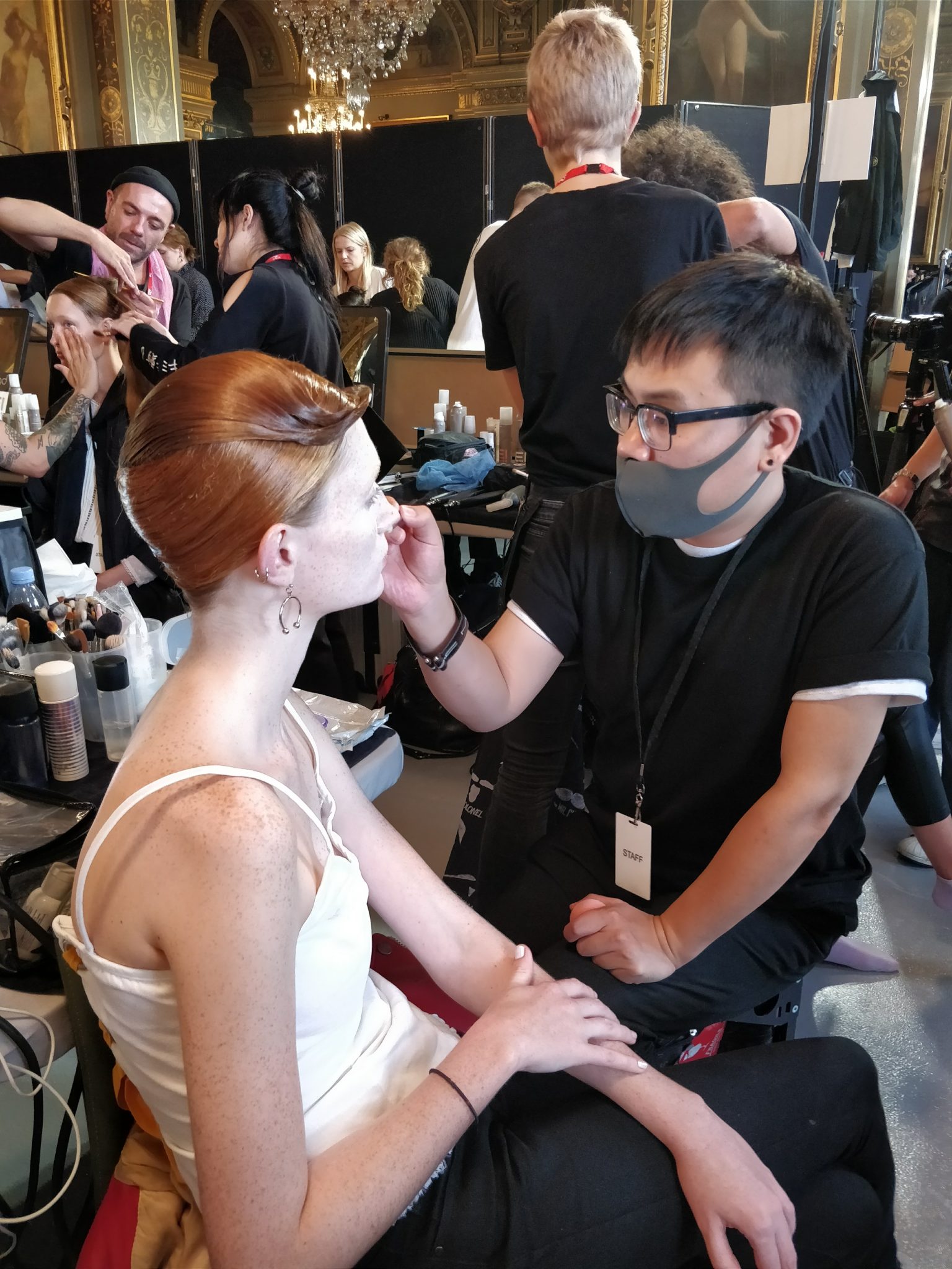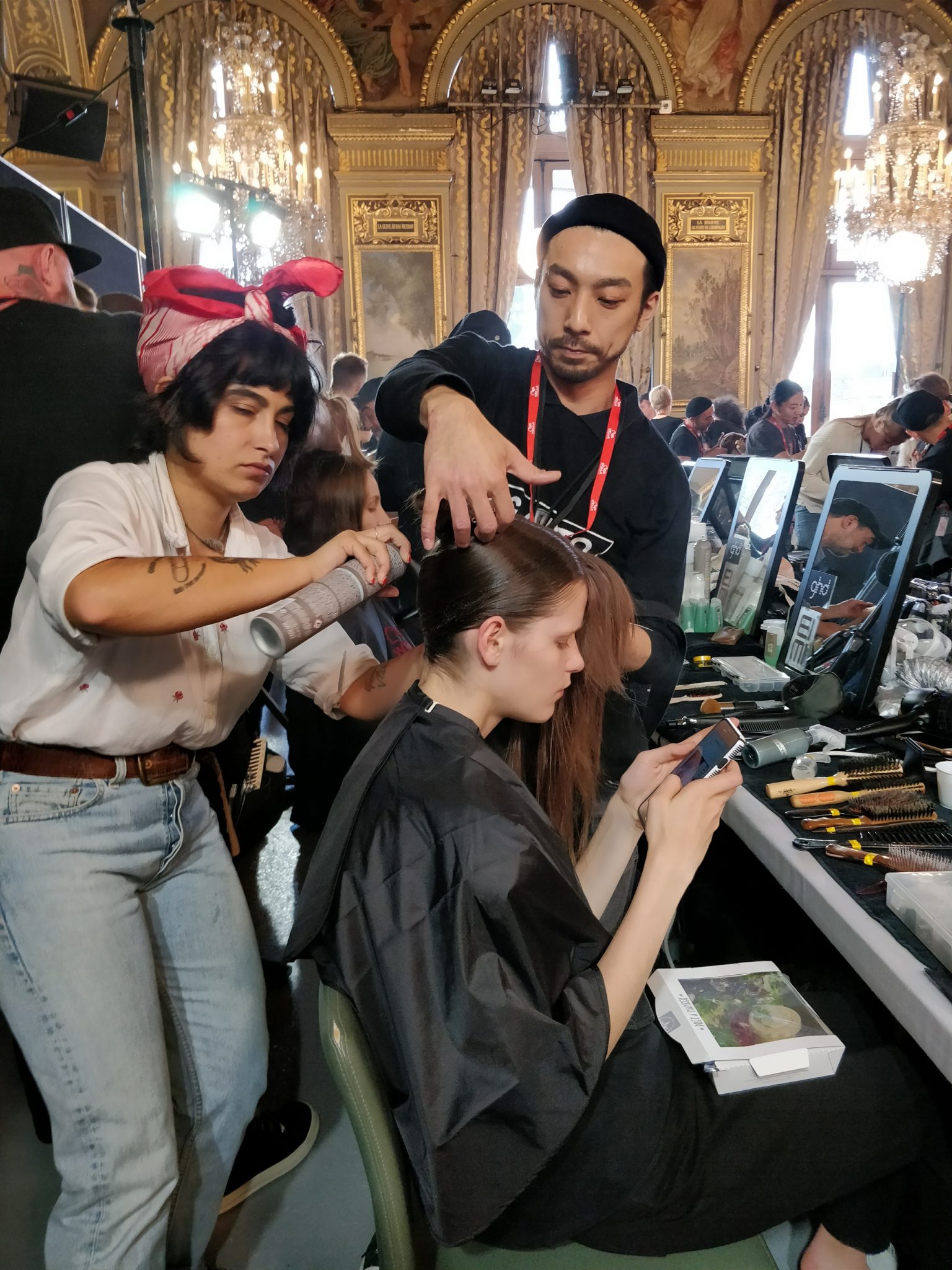 Le cadre était à couper le souffle, les salons de l’Hôtel de ville de Paris. Nous nous dirigions backstage pour assister aux répétitions et rencontrer Eugene Souleiman, le directeur de création de la maison Wella.