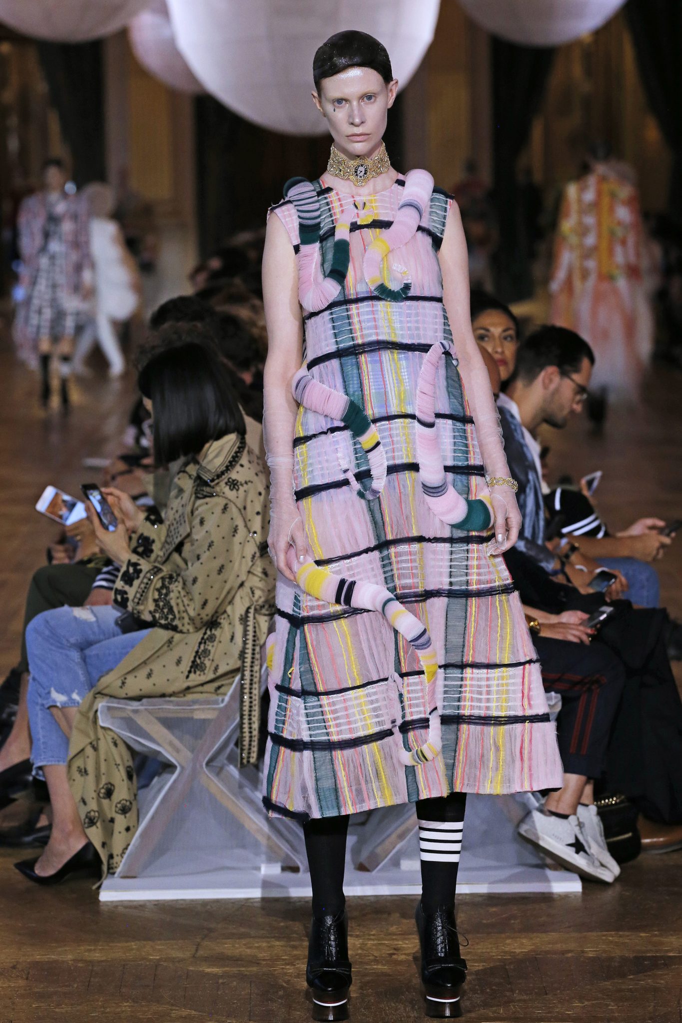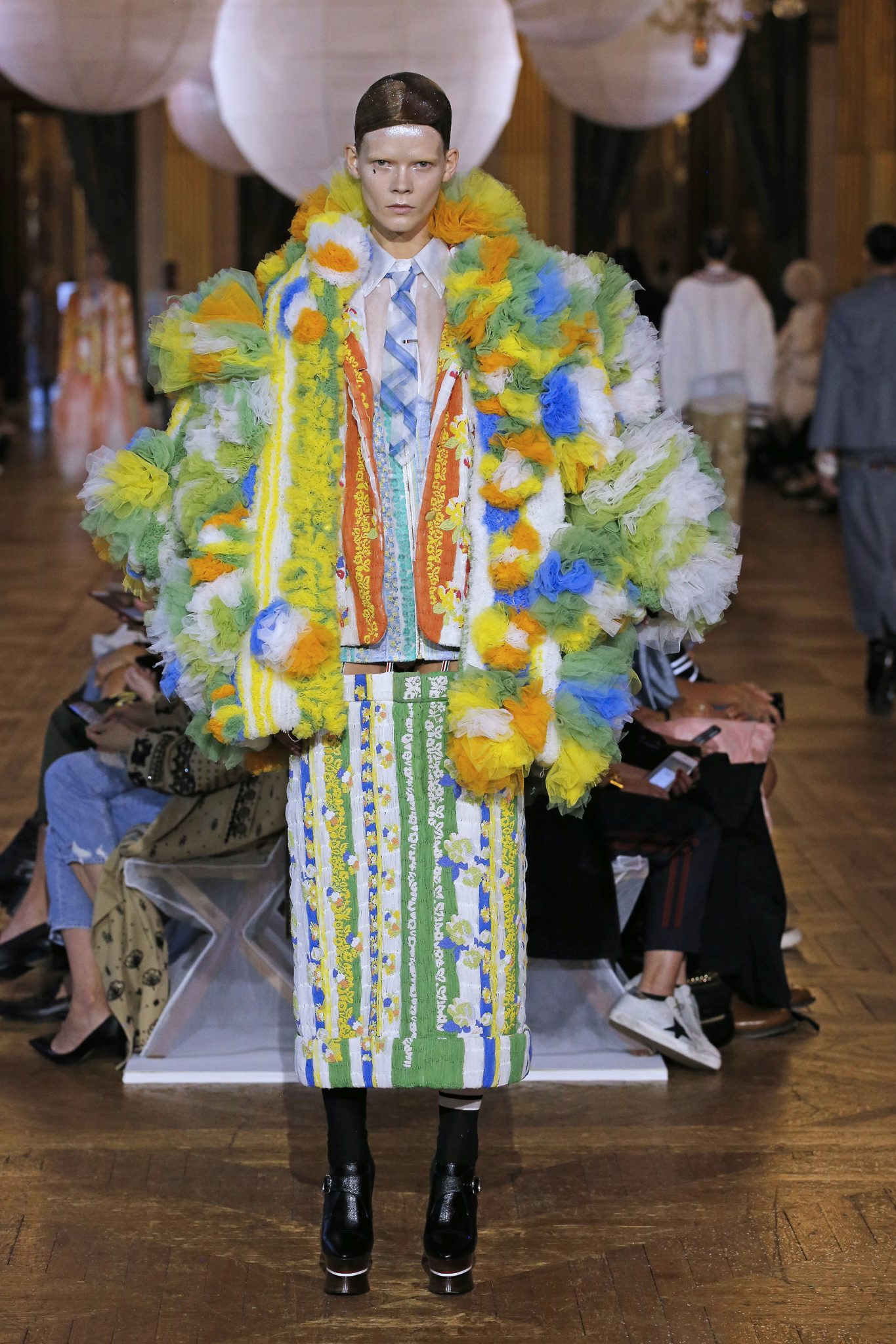 Côté matière on retrouve des plaids, des seersuckers, des madras. mais surtout du tulle. C’est un hommage à la couture, une mode travaillé à l’extrème où les tissus deviennent prétexte à toutes les folies.