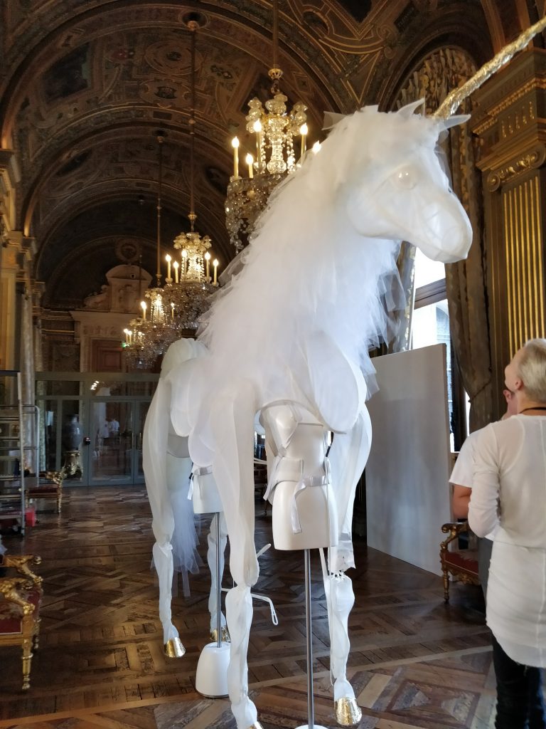 Les personnages font penser tantôt à des funambules, des cosmonautes, des fées, des monstres, on y croise même des licornes. Nous sommes plongés en enfance, dans nos rêves les plus fous, dans les contes.