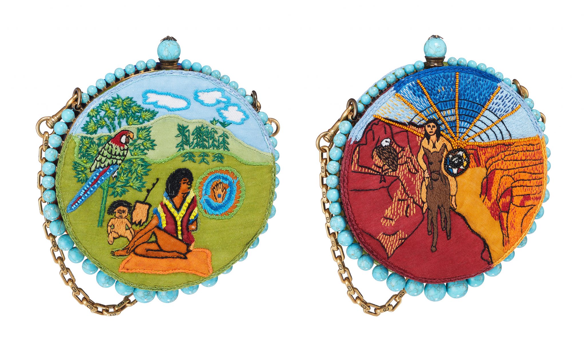 DEPUIS LE 6 NOVEMBRE, LES PIÈCES DE LA COLLECTION CROISIÈRE 2018 INSPIRÉES DU JEU DE TAROT MOTHERPEACE, IMAGINÉ PAR KAREN VOGEL ET VICKI NOBLE DANS LES ANNÉES 1970, SERONT PRÉSENTÉES DANS TOUS LES FLAGSHIPS DIOR ET UNE SÉLECTION EXCLUSIVE DE POP-UP STORES SPÉCIALEMENT DÉCORÉS DE TABLEAUX ET DE SUSPENSIONS D’ARCANES DE CE JEU COMME LA ROUE DE FORTUNE, LA GRANDE PRÊTRESSE OU ENCORE LE SOLEIL. À PARIS, AU 44, AVENUE MONTAIGNE ET RUE DU SAINT-HONORÉ, À MILAN CHEZ ANTONIA, À BERLIN CHEZ THE CORNER, PUIS À MIAMI, CES POP-UP STORES PLACÉS SOUS LE SIGNE DU TAROT DÉVOILERONT LES CRÉATIONS QUI REVISITENT LES ILLUSTRATIONS FÉMINISTES DES CARTES DIVINATOIRES AYANT INSPIRÉ MARIA GRAZIA CHIURI. LES MINAUDIÈRES RONDES, LES MODÈLES DE LADY DIOR ET DE DIORADDICT, LES FOULARDS EN SOIE, LES PULLS, LES BOMBERS AVEC DES PATCHS, LES PERFECTOS EN CUIR ET BIEN D’AUTRES CRÉATIONS QUI REPRENNENT CES FIGURES FÉMININES DANS DES VERSIONS BRODÉES, IMPRIMÉES OU PEINTES À LA MAIN, SERONT DISPONIBLES EN EXCLUSIVITÉ DANS CES ESPACES.« LES TAROTS DE KAREN VOGEL ET VICKI NOBLE SONT PUISSANTS, ILS SONT L’EXPRESSION ARTISTIQUE D’UN FÉMINISME CAPABLE DE GUÉRIR ET DE FORTIFIER. J’AI VOULU LES RÉUTILISER AVEC UN ESPRIT POP. CES TAROTS SONT LIÉS AUX SIGNES ASTROLOGIQUES, EUX AUSSI CHERS À MONSIEUR DIOR. LA DIVINATION ET LES TAROTS FONT PARTIE DES CODES DE LA MAISON QUE J’AI DÉCOUVERTS EN APPROFONDISSANT L’HISTOIRE DE CHRISTIAN DIOR ET QUE JE M’APPROPRIE EN LES RÉINTERPRÉTANT DANS CHAQUE COLLECTION AVEC UN ESPRIT DIFFÉRENT», EXPLIQUE MARIA GRAZIA CHIURI.