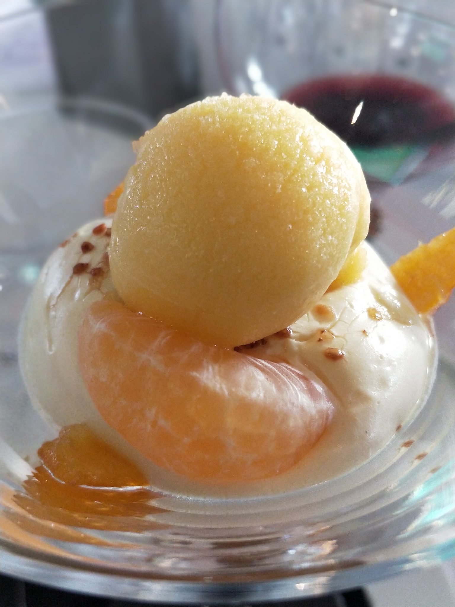 Crème légère, suprêmes de mandarine déguisés, sorbet mandarine impériale