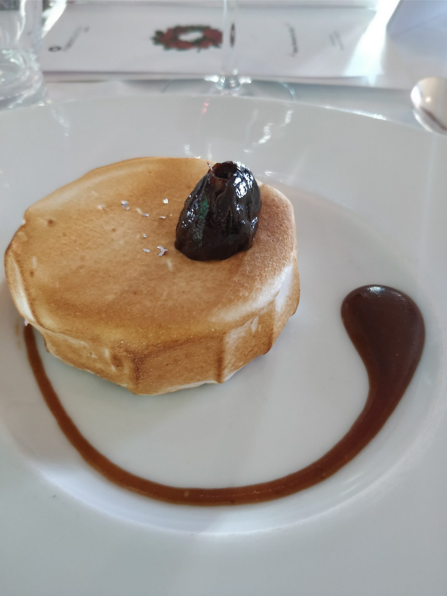 Aux pruneaux, à l’armagnac, glace au miel et biscuit aux noix du Périgord