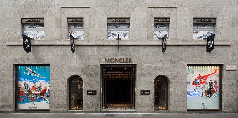 «Le grand magasin, de la via Montenapoleone, remis à neuf, représente à ce jour la plus grande boutique monomarque Moncler au monde et souligne