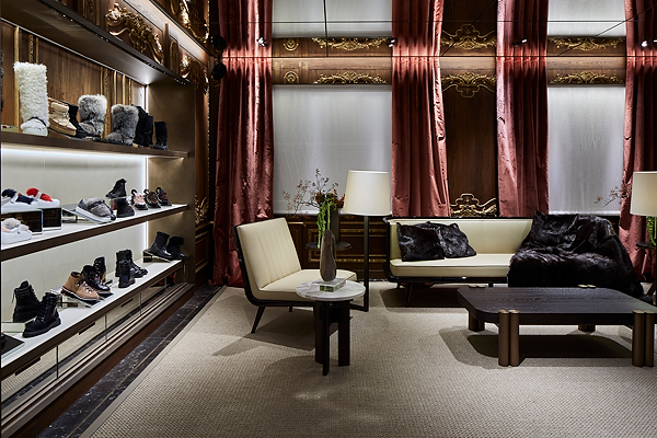 Une fois de plus, on doit le concept architectural au cabinet français Gilles & Boissier, fidèle partenaire artistique depuis de nombreuses années, un concept dont le design intérieur et le style constituent désormais la signature Moncler dans le monde entier.
