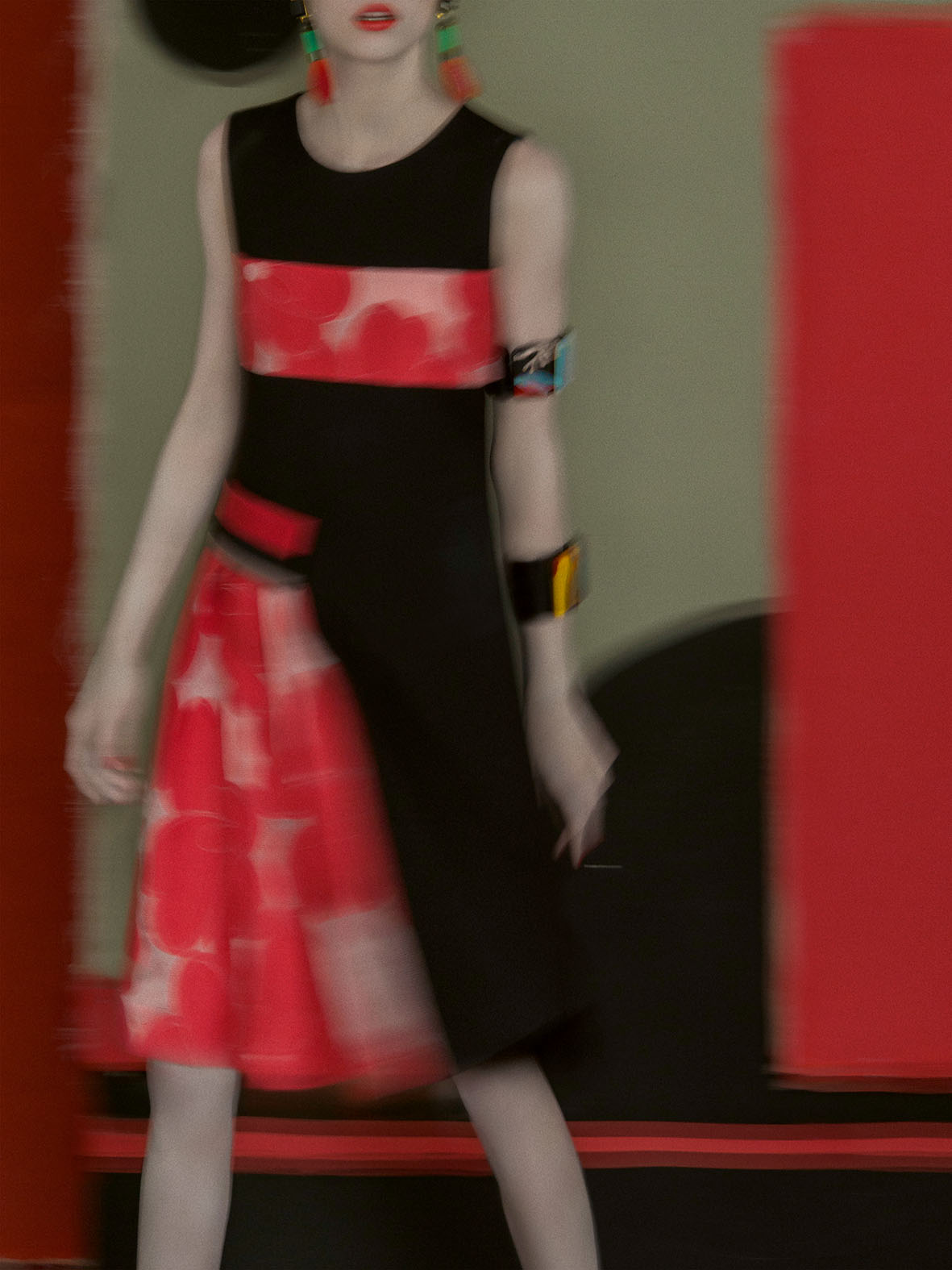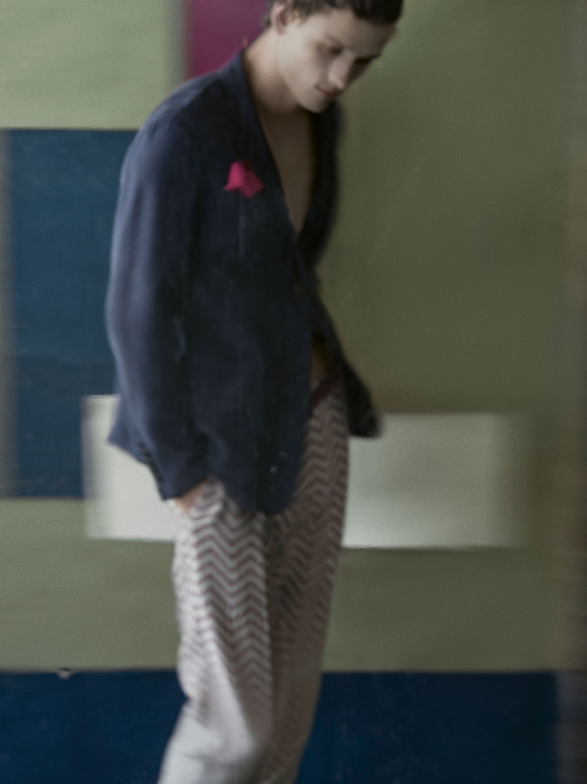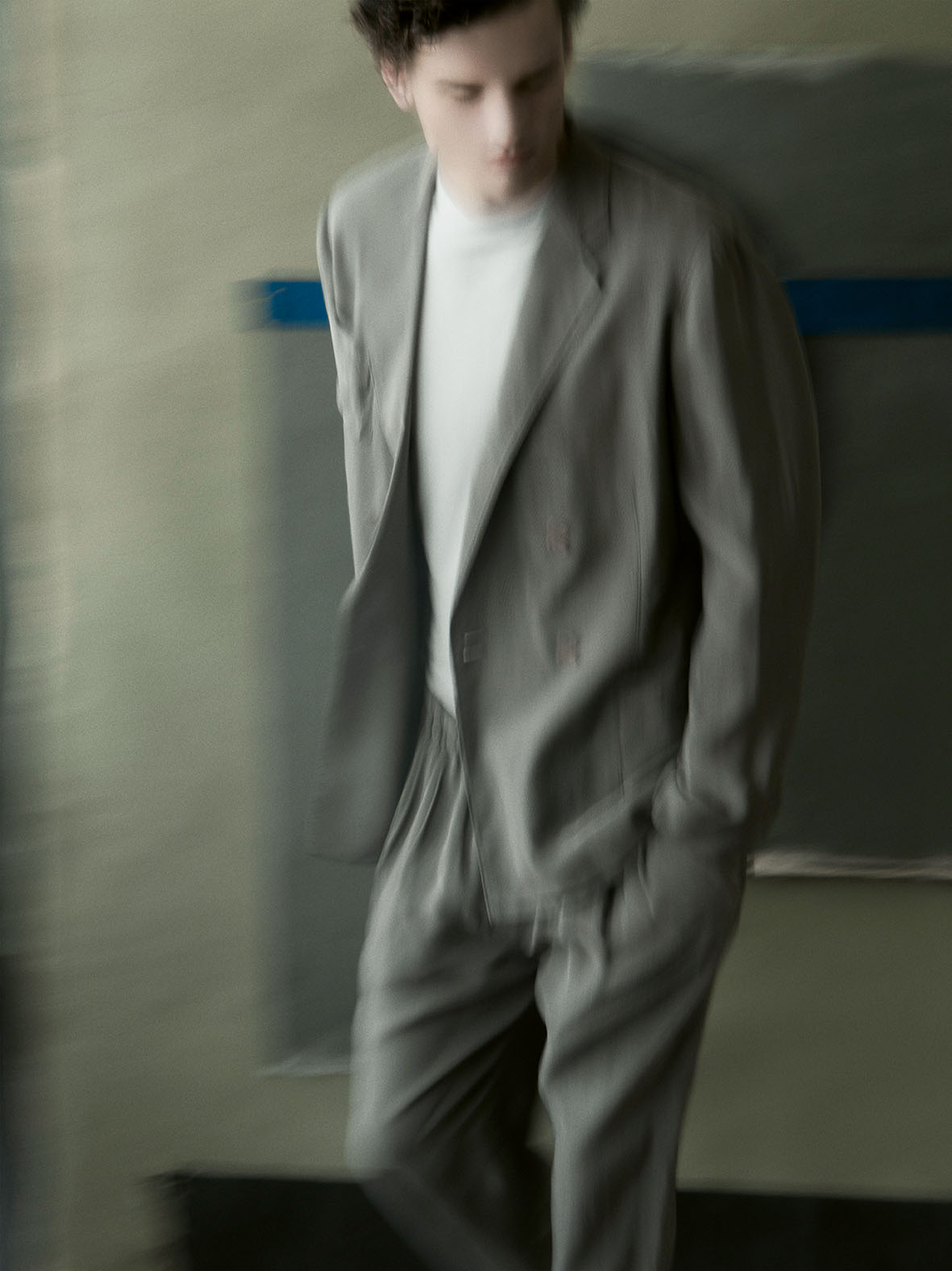 Les photos ont un aspect vif, dans lequel des tracés de lumières, couleurs et mouvements, chargés d’émotions, se transforment en vêtements, accessoires et gestuelle, créant des champs d’énergie. Cette saison, Giorgio Armani a choisi de travailler avec une artiste au talent incontesté, une personne capable de créer des images à la fois lyriques et puissantes. Les mannequins Daga Ziober et Simon Nessman posent sur de léger focus aux fonds abstraits, et sont capturés dans des poses dynamique et suspendue. L’effet est délicat, impalpable, et évocateur : chaque cliché est comme une peinture, plein de vie, et véritablement intemporel.