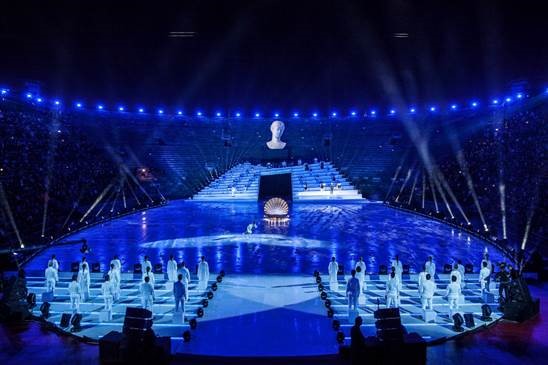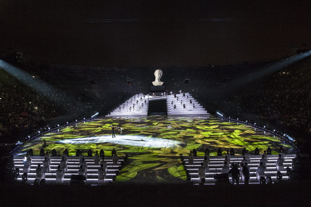 Un show sur une scène à 360° mélangeant opéra lyrique avec la voix d’Andréa Bocelli et patinage artistique, avec la participation exceptionnelle des patineurs Meryl Davis et Charlie White, Meagan Duhamel et Eric Radford ainsi que Stéphane Lambiel, Shizuka Arakawa et Evgeni Plushenko.
