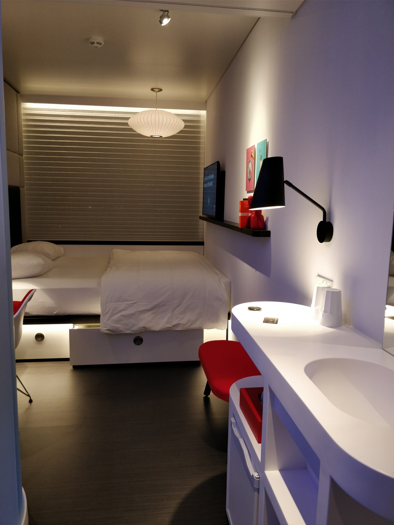 La philosophie de citizenM est de proposer à ses hôtes un luxe abordable et convivial. Toutes les chambres sont équipées d’un lit king-size et d’une grande douche design. La domotique fait partie intégrante de la chambre. Une tablette numérique appelée « Mood pad » permet aux clients de personnaliser l’intensité et la couleur de l’éclairage, de fermer ou d’ouvrir les rideaux, de régler la température de la chambre, de regarder la télévision ou de connecter son smartphone. Ainsi en un clic, c’est un jeu d’enfant de personnaliser sa chambre pour se sentir comme chez soi en créant sa propre ambiance. Les hôtes peuvent aussi utiliser le Mood pad pour lire leurs propres contenus sur le grand écran plat : musique, vidéos, diaporamas de photos et se sentir complètement chez eux. Grace au partenariat entre citizenM et The Public House of Art, une galerie basée à Amsterdam deux œuvres contemporaines et authentiques sont exposées dans chaque chambre et poursuivent le ton donné dans les espaces communs.