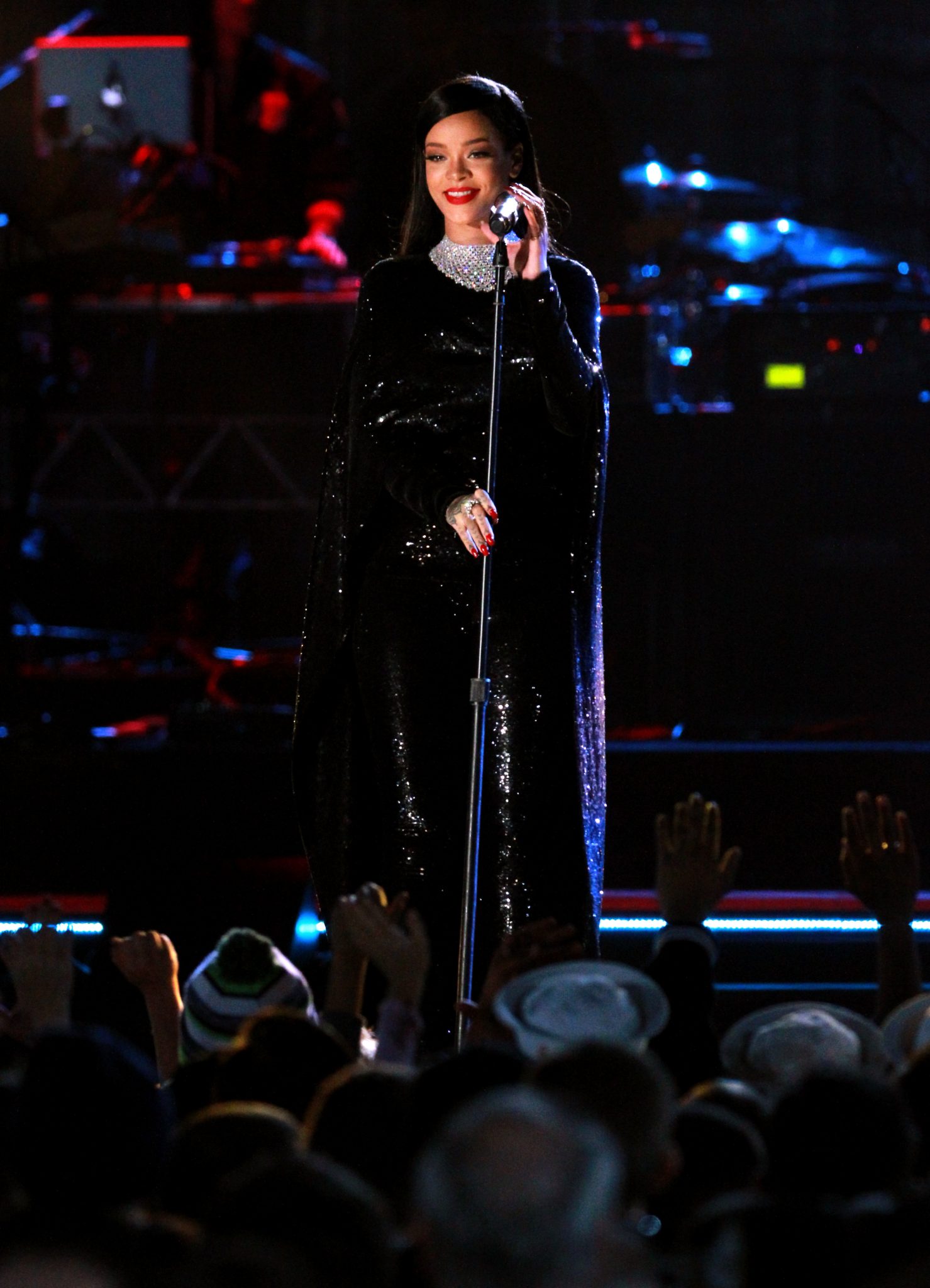 - WASHINGTON, DC – NOVEMBER 11: Singer Rihanna performs onstage during « The Concert For Valor » at The National Mall on November 11, 2014 in Washington, DC. (Photo by Kevin Kane/Getty Images for HBO)