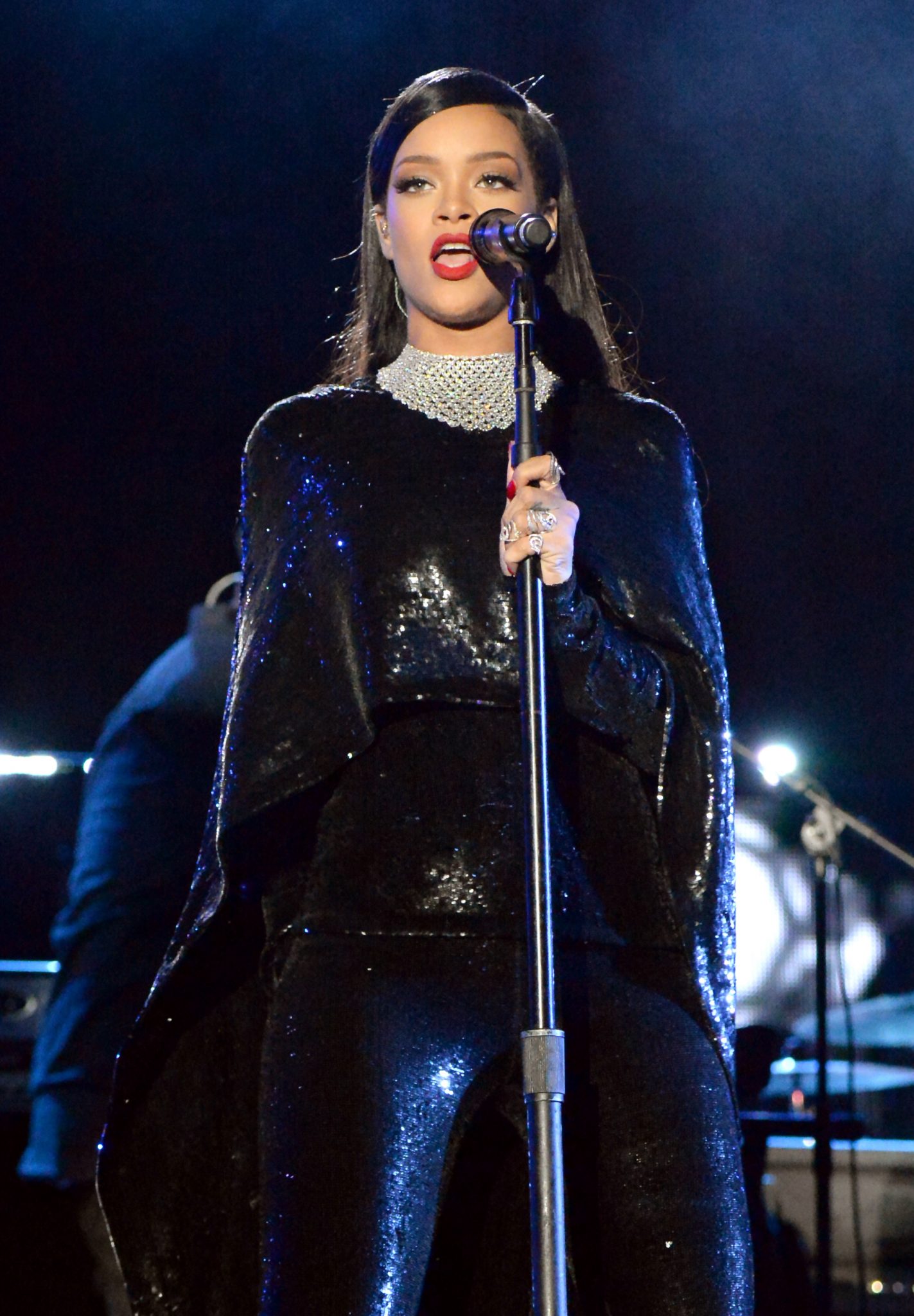 - BEVERLY HILLS, CA – DECEMBER 11: (EXCLUSIVE COVERAGE) Recording artist Rihanna performs onstage at The Inaugural Diamond Ball presented by Rihanna and The Clara Lionel Foundation at The Vineyard on December 11, 2014 in Beverly Hills, California. (Photo by Jason Kempin/Getty Images for The Clara Lionel Foundation)