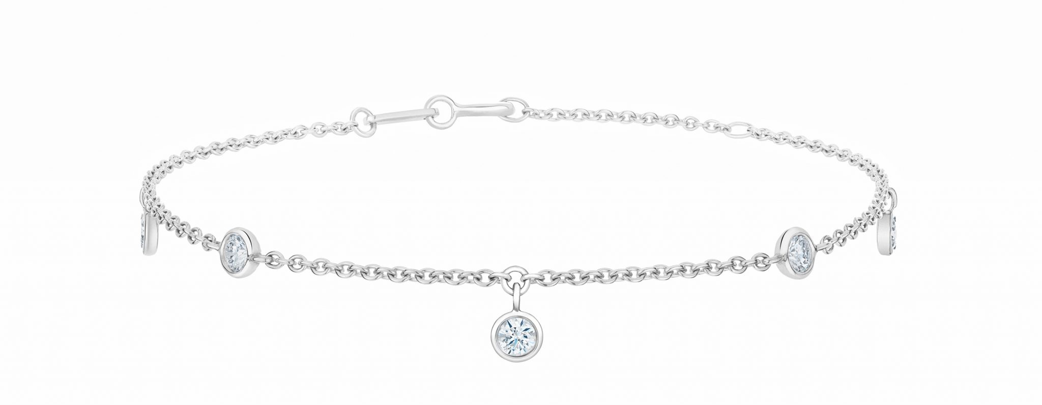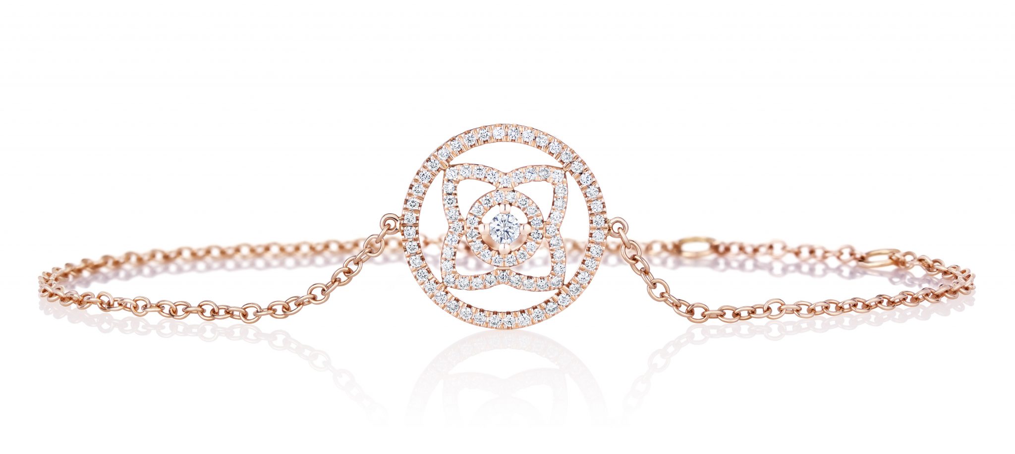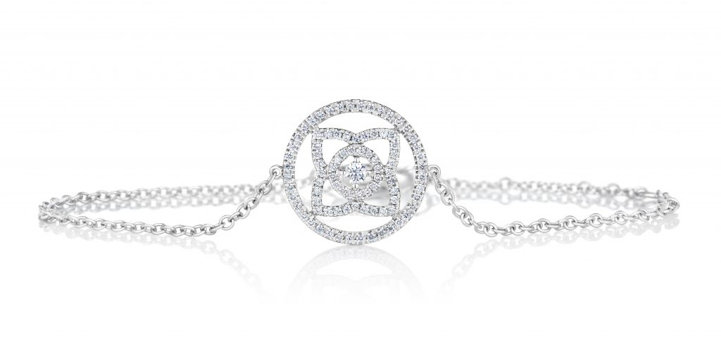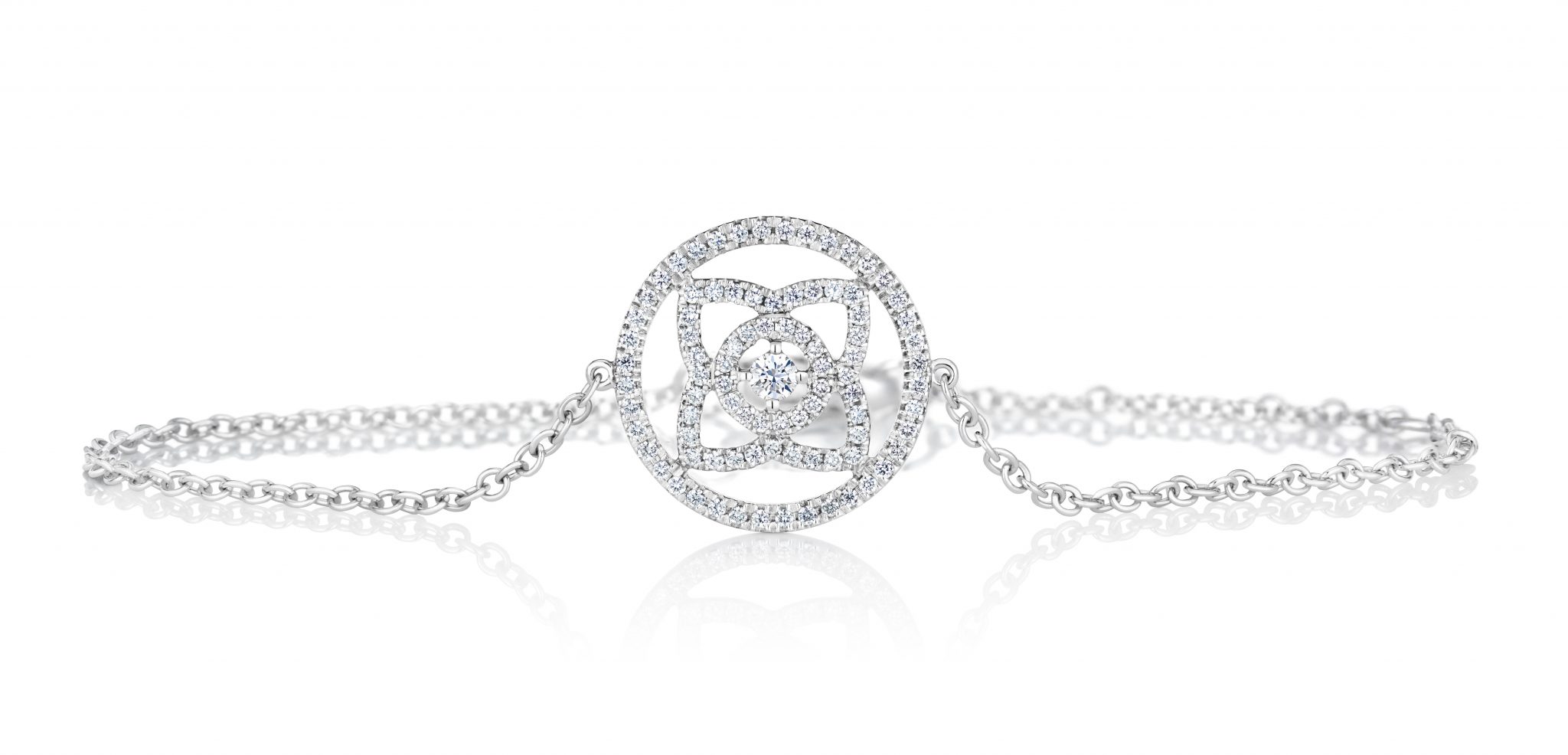 Pour un éclat éblouissant, les bracelets De Beers Aura captivent, avec un halo de diamants micropavés autour de diamants à la beauté sans égale