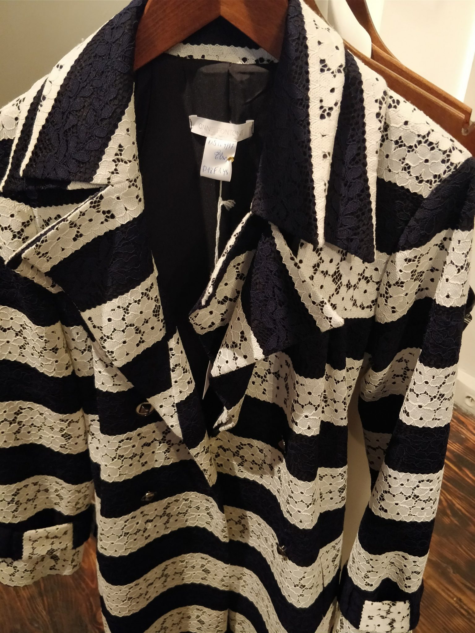 La créatrice nous emmène dans le dressing du tailleur traditionnel, avec des rayures et des carreaux, féminisés grâce à des galons et