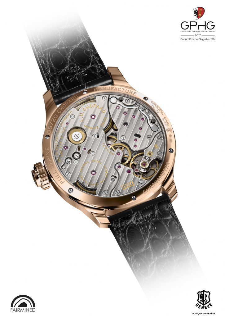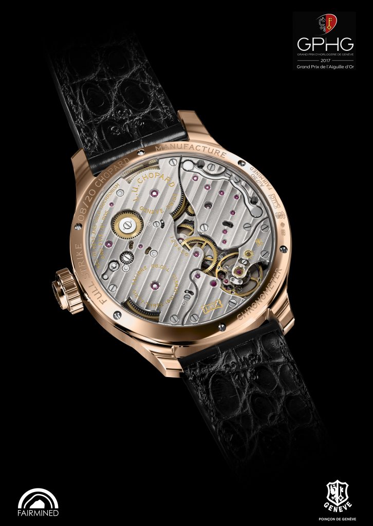 Lors de l’édition du Grand Prix de l’Horlogerie de Genève 2017, la Maison Chopard a remporté l’Aiguille d’Or pour la montre L.U.C Full Strike