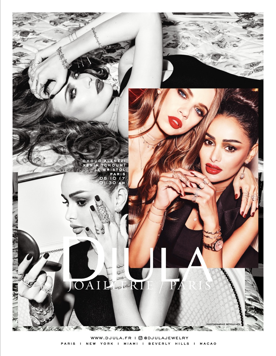 Pour la nouvelle campagne DJULA 2018, il casse à nouveau les codes et loin des visages de papier glacé, il choisit pour incarner la Maison deux des nouvelles icônes de la mode et des réseaux sociaux : les « Influenceuses » Xenia Tchoumi et Ohood Alenezi . Deux Femmes, deux « indépendantes » aux personnalités aussi différentes qu’affirmées et en total harmonie avec l’esprit DJULA.