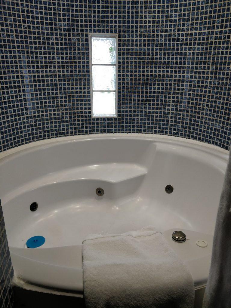 Cachée des regards indiscrets, pour accéder à la piscine, il faut traverser le patio du Donjon. Entouré de verdure, les pieds dans l’eau. la vue d’ici est à couper le souffle. Le village d’Etretat, les falaises et la mer s’étendent en bas comme un cliché de carte postale. Ceux qui ont la bougeotte enchaînent les longueurs alors que les autres préfèrent les bains de soleil dans les transats, ou les siestes dans les canapés ombragés tout autour du bassin.