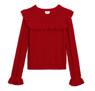 Vanessa Hudgens wore the kate spade new york ‘Ruffle Yoke Sweater’ in charm red while attending a Joico press event on December 18th in Los Angeles.
